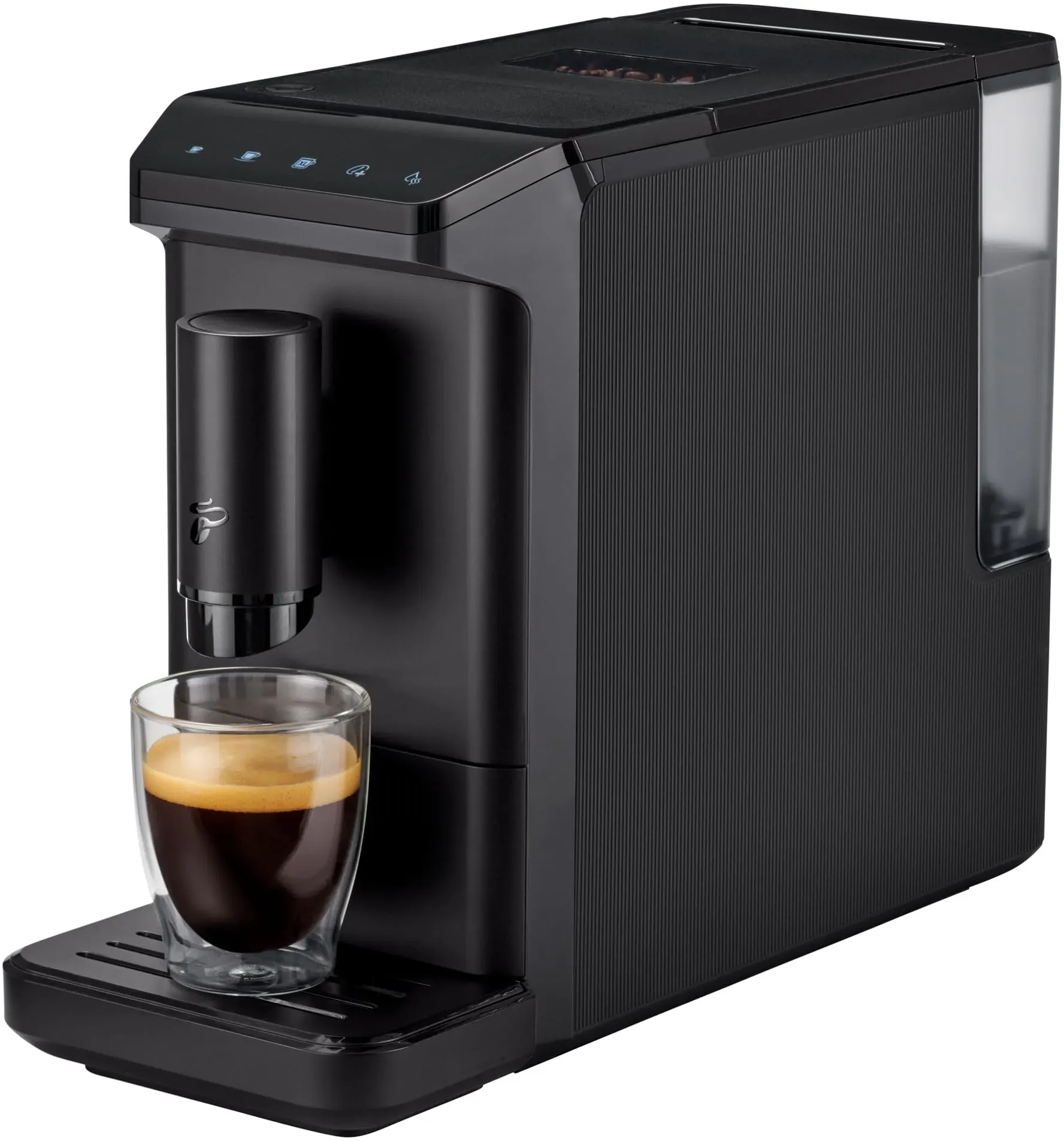 3 Händlerangebote bei billiger.de - Kategorie: Kaffeevollautomaten - Tchibo - GROSSARTIG MINI: Mit nur 16 cm in der Breite, 30,5 cm Höhe und 40 cm Tiefe, passt der Esperto mini in jede moderne Küche. Ganz egal ob im Apartment, im Tiny-House, im Camper oder der Office-KücheUNSER GESCHENK AN SIE: Entdecken Sie mit unserem limitierten Kaffee Probierset die Tchibo Kaffeevielfalt und finden Sie Ihren Lieblingskaffee Starten Sie Ihren Vollautomaten mit unseren Klassikern Caff Crema mild, Caff Crema vollmundig, Barista Caff Crema und Espresso kräftig Sizilianer ArtEINFACHE BEDIENUNG: Mit einem Knopfdruck zum frisch gebrühten Kaffee dank der Intense+ Technologie und dem Edelstahl-Kegelmahlwerk, welches für das perfekte Aroma sorgtINDIVIDUELLER KAFFEEGENUSS: In Sekundenschnelle steht der frische Espresso, Caff Crema und XL Caff Crema bereit. Einfach und unkompliziert durch das intuitive Bedienen über das minimalistische Touch-DisplayVOLLENDETER KAFFEEKOMFORT: Der seitlich entnehmbare 1,1-Liter-Wassertank ermöglicht einfaches Befüllen, während der Bohnenbehälter (130 - 150 g) mit Silikonabdichtung die Frische bewahrt. Der höhenverstellbare Auslauf mit Beleuchtung und anpassbare Abschaltautomatik sorgen für praktischen Komfort im AlltagSCHNELLE REINIGUNG: Das automatische Entkalkungsprogramm und die entnehmbare Brühgruppe machen den Vollautomaten einfach zu pflegen und langlebig. Der schlichte QR-Code am Bohnenbehälter bietet schnellen Zugang zum ServiceMit dem Esperto mini startet ... Dieses Angebot direkt von tchibo.de zeigt das schwarze Modell, was für Vertrauen in die Marke spricht. ![]() ![]() Tchibo - Esperto mini Kaffeevollautomat - schwarz