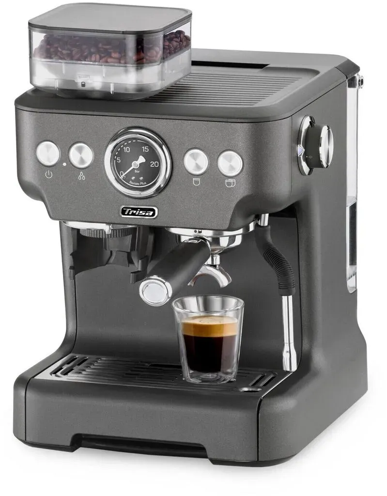 3 Händlerangebote bei billiger.de - Kategorie: Espressomaschinen - Trisa - Exzellenter Espresso-Genuss mit der Kaffeemaschine Barista Plus, dank integriertem Mahlwerk und Dualboilersystem. - GTIN:7640306320735 ![]() ![]()