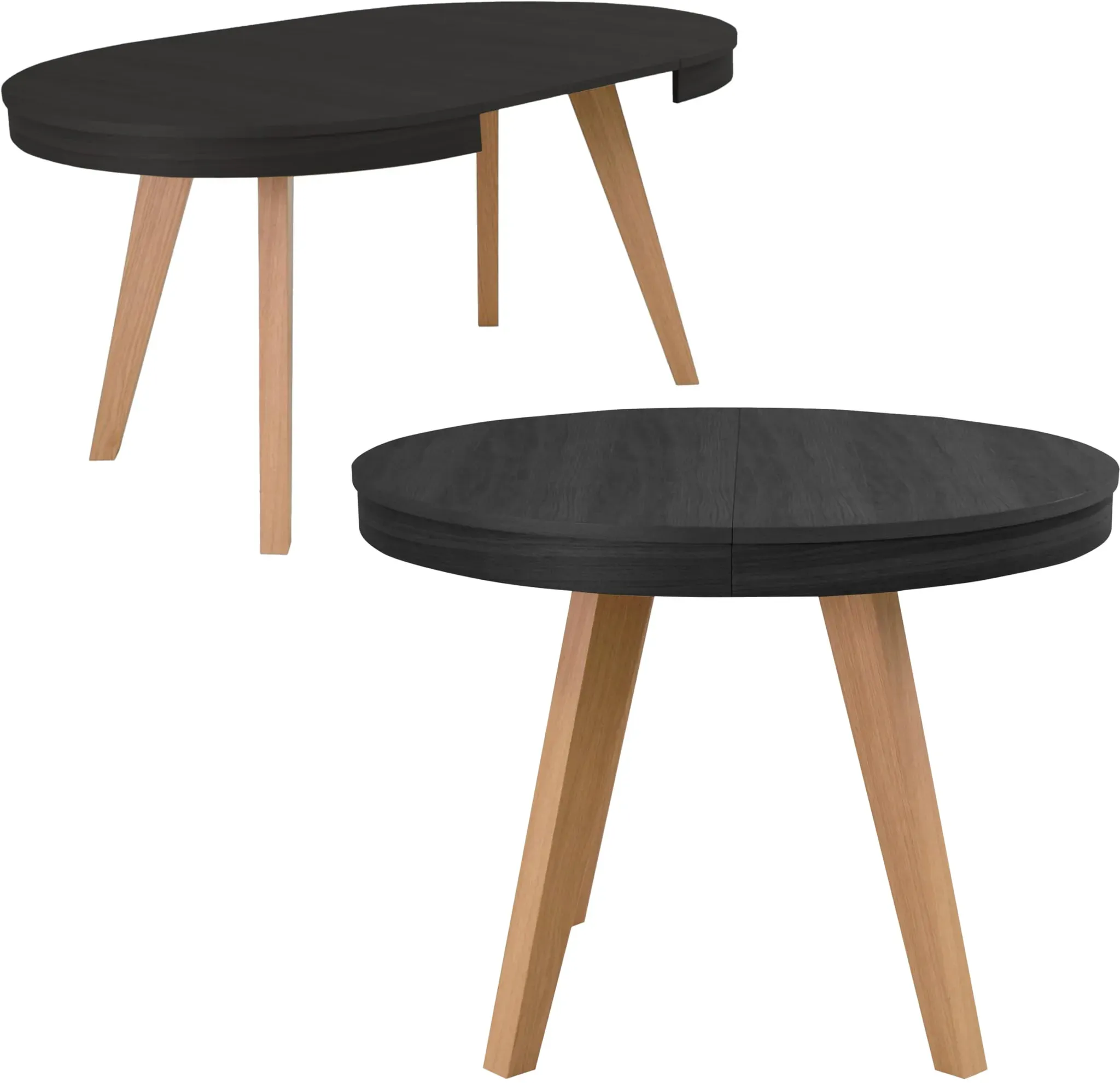 Gewöhnlich versandfertig in 9 bis 10 TagenImebel Esstisch Rund Ausziehbar 100-200 cm - Modern Runder Esszimmertisch Ausziehbar - Tisch mit einfacher Einhand-Ausziehfunktion - Tischplatte Eichenfurnier, Beine Massivholz