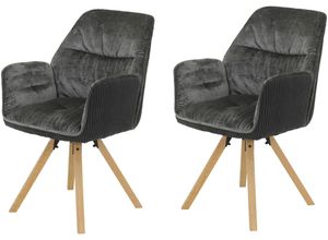Esszimmergarnituren Wohnen Tische Stühle - - Produktdetails: Details Sitzfläche: gepolstert, Details Rückenlehne: gepolstert, Details Armlehnen: gepolstert, Anzahl Teile: 2 Stk., Ausstattung Funktionen: Ausstattung: Armlehnen, Funktionen: Drehfunktion, Verstellbarkeit Sitzfläche: drehbar, Art Gestell: 4-Fuß-Gestell, Maßangaben: Breite: 56 cm, Tiefe: 62 cm, Höhe: 89 cm, Gewicht: 10,2 kg, Sitzbreite: 41 cm, Sitztiefe: 44 cm, Sitzhöhe: 49 cm, Belastbarkeit maximal: 120 kg, Höhe Armlehnen: 66 cm, Hinweis Maßangaben: Alle Angaben sind ca.-Maße., Material: Bezug Sitzfläche: Samtvelour, Bezug Armlehnen: Breitcord/Samtvelour, Scheuerbeständigkeit Bezug: 5.000 Scheuertouren, Pillingbildung Bezug: 4 (gering), Abriebfestigkeit Bezug: 4-5 (gut - sehr gut), Material Sitzfläche: Samtvelour, Stoff, Polyester, Polyamid, Bezug Rückenlehne: Breitcord/Samtvelour, Material Rückenlehne: Breitcord/Samtvelour, Stoff, Polyester, Polyamid, Material Armlehnen: Breitcord/Samtvelour, Stoff, Polyester, Polyamid, Material Gestell: Massivholz, Holzart: Pappel, Holzart (botanisch): Populus alba, Information Materialzusammensetzung: Innen 100 % Polyester, Außen 92 % Polyester, 8 % Polyamid, Farbe: Farbe Sitzfläche: Anthrazit, Farbe Rückenlehne: Anthrazit, Farbe Gestell: Holzfarben, Farbe Armlehnen: Anthrazit, Farbhinweise: Bitte beachten Sie, dass bei Online-Bildern der Artikel die Farben auf dem heimischen Monitor von den Originalfarbtönen abweichen können., Farbbezeichnung: Anthrazit, Lieferung Montage: ... Dieser Stuhl von BYLIVING bietet hohen Sitzkomfort und eine 360-Grad-Drehfunktion mit einem Massivholzgestell. ![]() Esszimmerstuhl BYLIVING 'Tony', hellgrau, natur, B:57cm H:89cm T:61cm, Massivholz, Metall, Stoff, Stühle, mit Massivholzgestell eichefarbig, 360 Grad drehbar, hoher Sitzkomfort