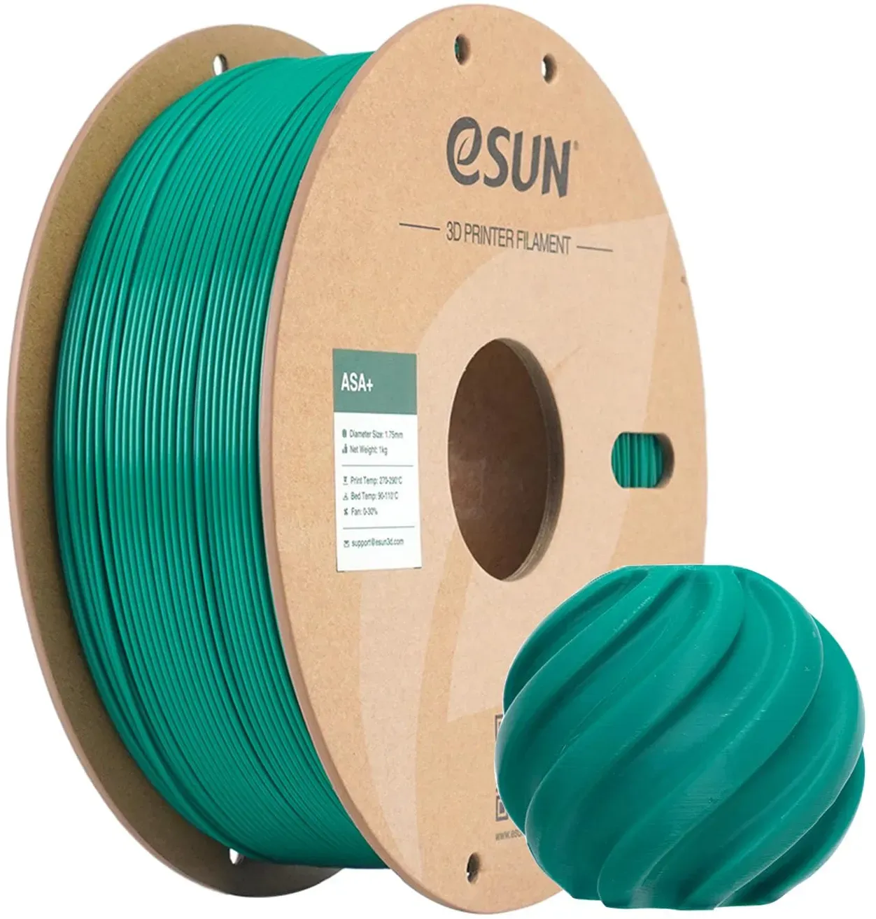 2 Händlerangebote bei billiger.de - Kategorie: Zubehör für 3D-Drucker - ESUN - Verbessertes ASA+ Filament : eSUN ASA+ Filament ist von gewöhnlichen ASA Materialien modifiziert. Und es hat eine bessere Zwischenschichtfestigkeit und überbrückungsleistung. ASA+ ist ein thermoplastisches technisches Filament mit breiten Anwendungen. Ausgezeichnete Witterungsbeständigkeit : eSUN ASA+ Filament hat die Vorteile der ausgezeichneten Witterungsbeständigkeit, weniger Verziehen, hohe Zwischenschichtfestigkeit, weniger Drahtziehen, hohe Maßgenauigkeit, schnelles Drucken, hohe Temperaturbeständigkeit, etc. Anwendbare Szenarien : eSUN ASA+ Filament ist weit verbreitet in Outdoor-Produkten, Greifwerkzeugen, Modellflugzeugen, elektronischen Geräten, Haushaltsgeräten, Instrumenten und Messgeräten, technischem Zubehör und anderen. Tangle Free & No Plugging : eSUN ASA+ Filament ist ordentlich gewickelt, schmilzt gut, zieht reibungslos und konstant ein, ohne die Düse oder den Extruder zu verstopfen, es überlappt oder verheddert sich nicht. Und minimale Toleranz und geringe Verformung, um eine gleichmäßige Zuführung und stabile Drucke zu gewährleisten. Bitte beachten : eSUN ASA+ Filament hat eine große Schrumpfungsrate, daher empfehlen wir Ihnen, die Temperatur während des Druckprozesses zu halten und in einem geschlossenen Drucker zu drucken. Und Sie können Kleber auf die Grundplatte für den Druck anwenden. - GTIN:6922572239524 ![]() ![]() eSUN ASA+ Filament 1.75mm, Wetterbeständiges 3D Drucker Filament, 1KG Spule (2.2 LBS) 3D Druck Materialien für 3D Drucker, Grün