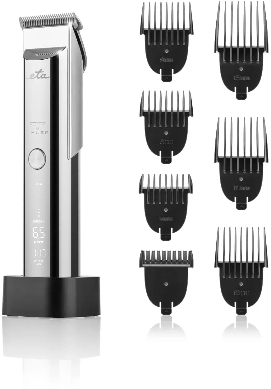 EAN: 8590393320875 - Sparen Sie unnötige Kosten und Zeit beim Friseur! Mit dem eleganten ETA Tyler Haar- und Bartschneider, können Sie sich nicht nur zu Hause, sondern auch unterwegs selbst um Ihr Aussehen kümmern. Regelmäßige Pflege war noch nie so einfach Der abnehmbare Trimmkopf mit Titan-Keramik-Klinge bringt professionelle Qualität in Ihr Badezimmer. Für die Bart- und Kurzhaarpflege bietet er Ihnen eine einstellbare Schnittlänge (0,8 / 1,2 / 1,6 / 2,0 mm) und 6 austauschbare Kammaufsätze (3-18 mm). Für den perfekten Haarschnitt. Außerdem gibt es eine Verlängerung zum Effilieren, die selbst dicke Locken lenkt. Der Austausch der Aufsätze ist sehr einfach. Beim Trimmen können Sie zwischen 5 Geschwindigkeitsstufen wählen, deren aktuelle Einstellungen Sie dank des übersichtlichen Display immer unter Kontrolle haben. Diese zeigt Ihnen nicht nur die aktuelle Anzahl der Schwingungen, sondern auch den Grad der Blattbelastung oder die verbleibende Akkukapazität an. Sie zeigt auch an, wann der Akku geladen wird. Es weist Sie darauf hin, dass die Klingen mit dem im Lieferumfang enthaltenen öl geschmiert werden müssen und enthält eine Reinigungsbürste, die die regelmäßige Wartung erleichtert. Und dank der praktischen Reisetasche können Sie ihn überallhin mitnehmen. Rasieren mit und ohne Draht Der ETA Tyler Trimmer ist sowohl für Netz- als auch für Batteriebetrieb geeignet. Der hochwertige 3,7 V Li-Ion-Akku bietet Ihnen bis zu 240 Minuten Betriebszeit mit einer einzigen Ladung, die ... ![]() ![]() eta Haar- und Bartschneider TYLER ETA934290000, Li-ion Akku 3,7 V silberfarben