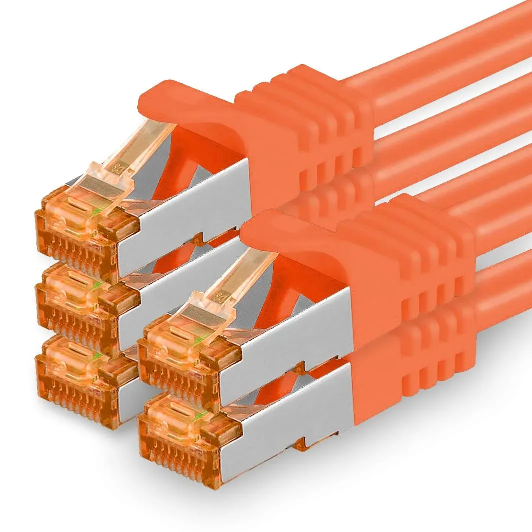 Verfügbarkeit: Auf Lager - Kategorie: Netzwerkkabel - Elfcam - GTIN:3701528707668 - Cat 8 Patchkabel hat eine superschnelle übertragungsgeschwindigkeit bis zu 40 Gbps und eine Betriebsfrequenz bis zu 2 GHz. Genau was du für Smart TV, Online Gaming oder Video Streaming brauchst. Cat 8 Ethernet-Kabel ist ein SFTP Kabel, das für geringe Störungsanfälligkeiten und Rauschen sorgt. Der vergoldete RJ45 Stecker verhindert das Korrodieren der Kontaktoberflächen. Das Internetkabel ist äußerst flexibel, robust und hat einen Durchmesser von nur 2,8mm*8,0mm. Der RJ45-Stecker ist mit einem flexiblen PVC Mantel vor dem Knicken geschützt. Cat 8 Verlegekabel ist mit Cat7 Cat6 und Cat5 aufwärts- und abwärtskompatibel. Ideal für Gigabyte Netzwerke, Online Gaming, Smart TV, Smart Home usw. erhältlich in Schwarz mit verschiedener Längen. Schnelle Datenübertragung bis zu 40 GBase-T 2000 MHz, schneller als Cat5 Cat5e Cat6 Cat6a Cat7 Patchkabel. Diese Kabel sind in verschiedenen Längen erhältlich - Bitte oben auswählen. - 12,99 Euro bei Amazon Marketplace CE - gefunden von billiger.de Dieses 5er-Pack Cat.7 Kabel bietet ein hervorragendes Preis-Leistungs-Verhältnis für die Ausstattung mehrerer Geräte. ![]() ![]() 1aTTack.de 1,5m - Cat.7 Netzwerkkabel Orange - 5 Stück Gigabit Ethernet LAN Kabel 10000 Mbit s Patchkabel Cat7 Kabel S FTP PIMF Schirmung LSZH Cat.7 Rohkabel Rj45 Stecker Cat 6a - 5 x 1,5 Meter