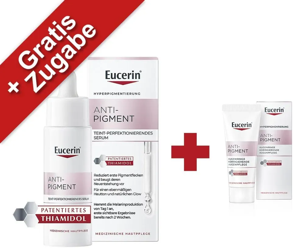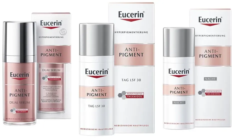 Eucerin anti pigment META PreisvergleichMit dem Meta-Preisvergleich suchen Sie gleichzeitig bei den großen Preisvergleich Portalen!Jetzt live Suche nach eucerin anti pigment starten! Eucerin anti pigment KaufberatungEucerin Anti-Pigment ist eine beliebte Pflegeserie von Eucerin (Beiersdorf) gegen Hyperpigmentierungen wie Pigmentflecken, Altersflecken und Sommersprossen, die mit dem patentierten Wirkstoff Thiamidol wirkt und klinisch bewiesen sichtbare Ergebnisse nach 2 Wochen täglicher Anwendung liefert.[1][2][6] Wichtige Aspekte beim Kauf beachten