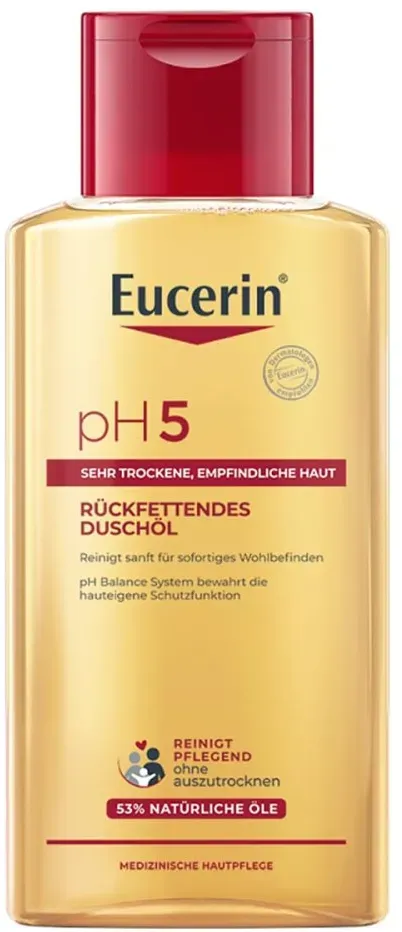 48,70 /l - Kategorie: Dusch- & Badeartikel - Eucerin - GTIN:4005800196614 - PZN:13889015 - Eucerin pH5 Duschöl 200ml Rückfettende Reinigung 200 ml - rezeptfrei - von Beiersdorf AG Eucerin - Duschgel - 200 ml - 9,74 Euro bei DocMorris Apotheke - gefunden von billiger.de ![]() ![]() Eucerin pH5 Duschöl 200ml - Rückfettende Reinigung 200 ml