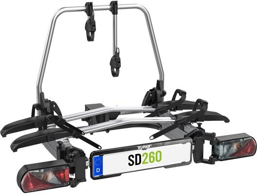 Verfügbarkeit: 3-5 Werktage - Kategorie: Fahrradträger - Eufab - GTIN:4055205365245 - Der EUFAB SD260 ist der allererste Fahrradträger für die Anhängerkupplung, der so weit auf einem Teleskopauszug vom Fahrzeugheck weg geschoben werden kann, dass alle Flügeltüren bis 85 cm Breite geöffnet werden können. Und das bei beladenem Fahrradträger. Somit auch bei VW Bussen, Fiat Ducato, Mercedes Sprinter und einfach allen großen Fahrzeugen, deren Flügeltüren max. 85 cm breit sind und zwischen Oberseite Kugel (Anhängerkupplung) und Unterkante Hecktüren mindestens 3,5 cm Abstand gegeben sind.Komplettset für 3 Räder mit Fahrradträger, Erweiterung und Auffahrschiene - faltbarer, erweiterbarer und ausziehbarer Fahrradträger für die Anhängerkupplung. Die angegebe Lieferzeit dieses Sets bezieht sich auf den Artikel mit der längsten Lieferzeit. Bitte schauen Sie gerne unter dem Reiter Setinhalt' die einzelnen Lieferzeiten nach. Ist ein Zubehörteil der länger dauernde Artikel, liefern...' - 778,90 Euro bei A.T.I. Autoteile Immler - gefunden von billiger.de Dieser Heckfahrradträger von OTTO ist E-Bike geeignet und bietet eine komfortable, vormontierte und klappbare Lösung. ![]() ![]() EUFAB Heckfahrradträger SD260 Heck-Fahrradträger (2 Räder) E-Bike geeignet, Ausziehbar, EBike tauglich, vormontiert, klappbar