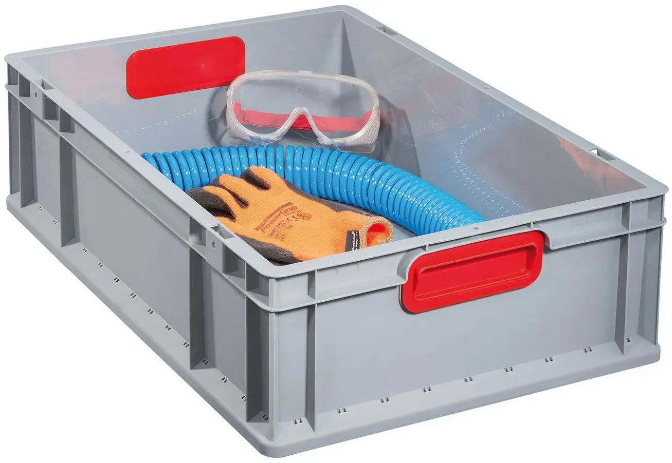 keine Angabe Sofort lieferbar, 2-4 Werktage in_stockEurobox 60x40x22 in Grau - Aufbewahrungsbox ohne Deckel mit Griffe bis 20kg belastbar, Polypropylen