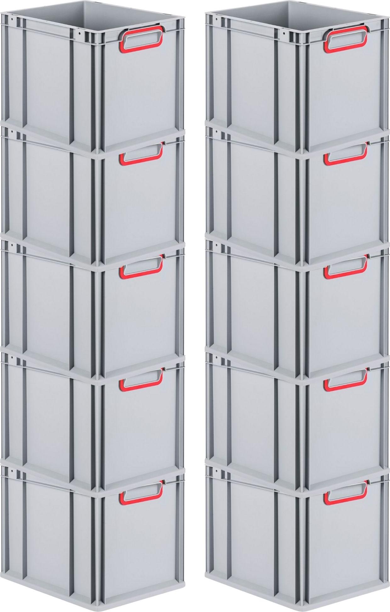 Kategorie: Aufbewahrungsboxen - Proregal - GTIN:4255681502367 - Wichtige Produkteigenschaften: Robuste Eurobox in Euronorm für Industrie & Gewerbe: die Eurobox in Grau aus stabilem Kunststoff Polypropylen (PP) ist der perfekte Eurobehälter für Lagerung, Transport und AufbewahrungDurch selbstzentrierenden Stapelrand und verstärkte Wände bestens geeignet als Stapelbox oder PalettenboxGroßzügige und ergonomische Griffmulden (offen oder geschlossen) für den einfachen Transport sowie extra verstärkter Boden bei großen EuroboxenStapelbar, Temperatur-, Säure- & ölbeständig, Lebensmittelecht und physiologisch einwandfrei Mit der stabilen Eurobox NextGen Color von PROREGAL hast du den perfekten Partner für Sortier- und Lagersysteme an Deiner Seite. Die Eurobox besticht durch funktionales und praktisches Design. Die Eurobox aus robustem Kunststoff (Polypropylen) ist temperaturbeständig von -10°C bis +60°C sowie unempfindlich gegenüber Säuren und Laugen. Sie kann demnach regelmäßig einer gründlichen Reinigung & Desinfektion untezogen werden. Die Box hat eine Tragkraft von 25kg, die es Dir ermöglicht, auch schwere Lasten einfach zu transportieren. Die hochwertigen Euroboxen unterstützen mit ihrem Farbsystem der Griffmulden das effiziente Sortieren der Waren. Verschwende keine Zeit mehr mit nervigem Suchen, sondern bringe mit Farbe mehr Ordnung Deinen Arbeitsalltag. Erhältlich ist die Eurobox in mehreren Größen und Farben. Was sind die wesentlichen Eigenschaften und einzigartigen ... Ein 10er-Set schwarzer Euroboxen mit Scharnierdeckel und 23 Litern, eine praktische Lösung für umfangreiche Lagerung. ![]() ![]() Proregal SuperSparSet 10x Eurobox NextGen Color mit Scharnierdeckel und Schiebeschnappverschlüssen | HxBxT 12x40x60cm | 23 Liter | Schwarz | Griffe schwarz...