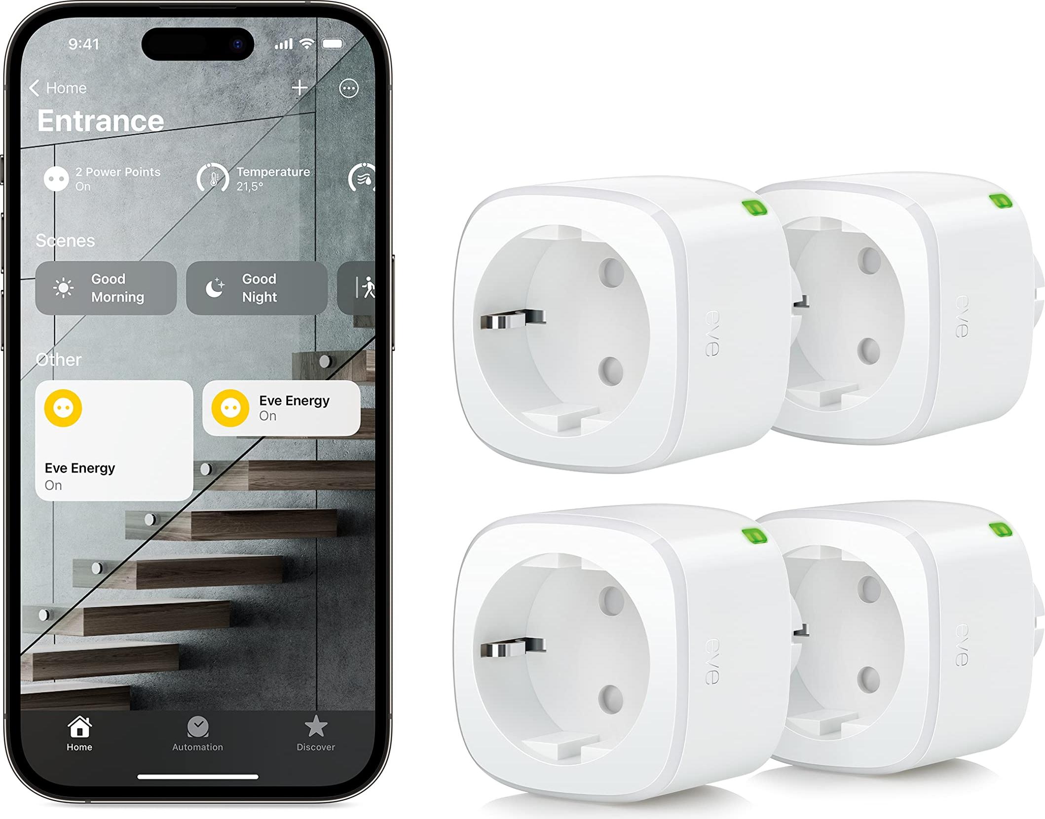 keine Angabe (Amazon Prime) Auf Lager Versand durch AmazonEve Energy (Matter) 4er Set - Smarte Steckdose, App- und Sprachsteuerung, TÜV-zertifiziert & Energy Strip - Smarte Dreifach-Steckdosenleiste