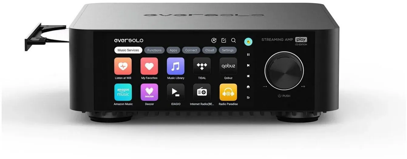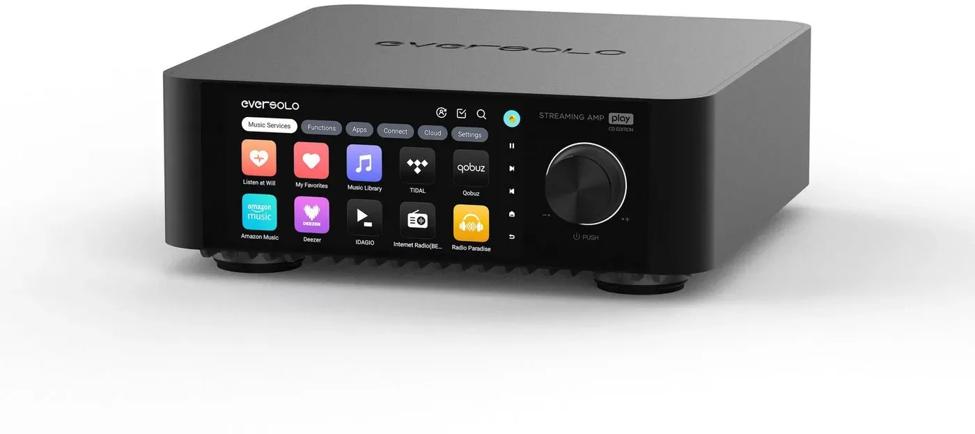 Auf Lager Versand durch AmazonEVERSOLO Play All-in-One Musik-Streamer mit Verstärker | 5,5-Zoll-Touchscreen, unterstützt Multi Room & Room Correction, Stream Tidal, Qobuz, Amazon Music & More | Schwarz (CD Edition)