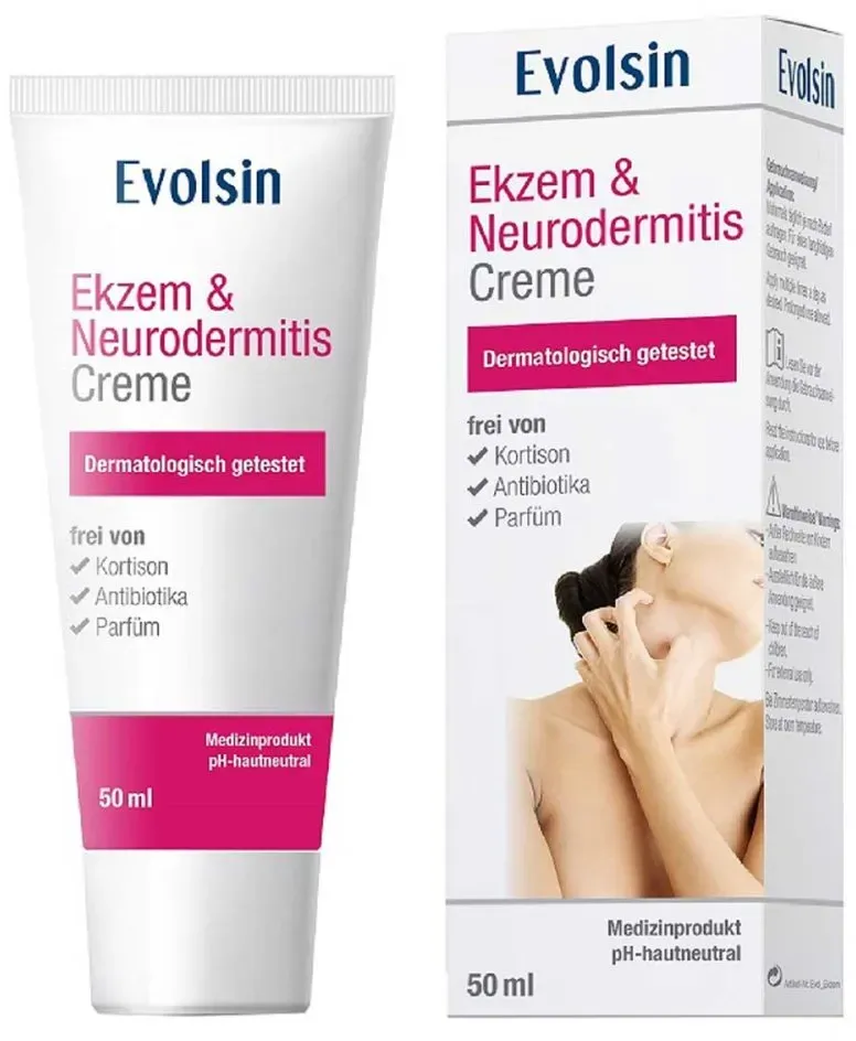 Die Evolsin Creme ist frei von Kortison, Parfüm, Antibiotika und Parabenen. Das macht sie besonders für empfindliche Haut und Langzeitanwendung geeignet. ? Ideal für Menschen, die auf Cortison verzichten möchten oder allergisch reagieren. Die Creme ist als Medizinprodukt zertifiziert und wurde in klinischen Studien auf Wirksamkeit und Hautverträglichkeit geprüft. ? Gute Sicherheit, auch für Kinder ab 3 Jahren (laut Hersteller). Die Creme wirkt durch eine kontinuierliche Freisetzung von Sauerstoff, die die Heilung der Haut unterstützt. ? Besonders bei Ekzemen, Neurodermitis und geröteter, schuppiger Haut empfohlen. Die Creme enthält u. a. Aqua, Glycerin, Dicaprylyl Carbonate, Sodium Carbonate Peroxide (Sauerstoffquelle), Silver Citrate (antibakteriell). ? Keine bekannten problematischen Inhaltsstoffe, aber bei Allergie auf einzelne Komponenten Vorsicht. ? Beliebte Produktmerkmale & Marken