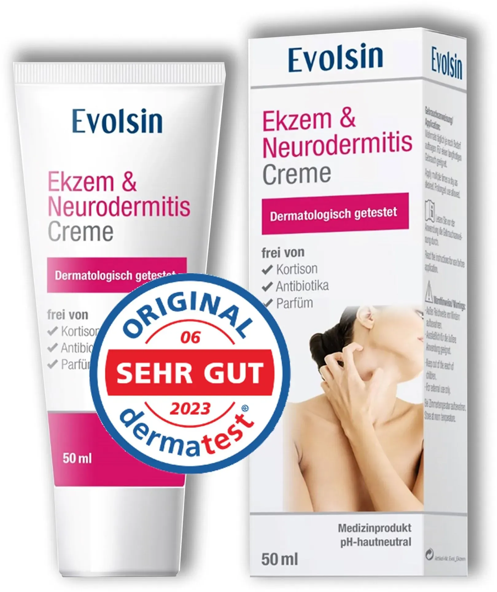 Zustand: Neu - 16,95 € / Stück - Ekzeme, Schuppenflechte & Gesichtsrose Medikamente zur Behandlung von Ekzemen, Schuppenflechte & Gesichtsrose - Evolsin - PZN: 16357187 Evol_Ekzem - EAN: 4260600590028 - BEI EKZEMEN & NEURODERMITIS: Die patentierte Neurodermitis Creme schafft optimale Bedingungen für die Regeneration der Haut durch eine kontinuierliche Sauerstoffabgabe. Die hautfreundliche Zusammensetzung eignet sich speziell für trockene, empfindliche und geschädigte Haut WIRKSAMKEIT BESTÄTIGT: Dermatest bestätigt die Effektivität der Creme in dermatologischen Tests bei der Behandlung von atopischen Ekzemen. Die Salbe mindert den Juckreiz und beruhigt die gereizte Haut DEUTSCHE MARKENQUALITÄT: Die Evolsin Neurodermitis Salbe ist ein in der EU zertifiziertes Medizinprodukt, welches unter höchsten Qualitäts- und Sicherheitsstandards ausschließlich in Europa produziert wird. Natürlich ist sie frei von Kortison, Antibiotika, Parabenen und Parfüm KORTISONFREI: Wir verzichten auf den Einsatz von Kortison und Antibiotika. Außerdem ist die Ekzem & Neurodermitis Creme frei von Parabenen und Parfüm sowie tierversuchsfrei - Verkäufer: Evolsin im amazon.de Marketplace OTTO bietet die Creme mit dem Hinweis auf ein zertifiziertes Medizinprodukt und patentierte Wirkweise, was die Qualität unterstreicht. ![]() ![]()