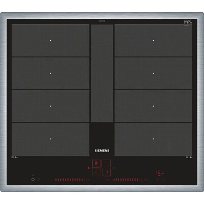 EAN: 4242003716779 - Kochfeldtyp: Glaskeramik-Induktionskochfeld Bauform: Einbaukochfeld autark Randbegrenzung: aufliegender Rahmen Edelstahl Anzahl Kochzonen: 4 Gerätemaße: 56 cm x 50 cm (B x T) - bei computeruniverse.net - aus Yadore Produktdaten Ein identisches Angebot von cyberport.de, das ebenfalls eine gute Wahl ist. ![]() Siemens EX645LYC1E iQ700 Einbau-Induktionskochfeld autark 60cm Edelstahl-Rahmen