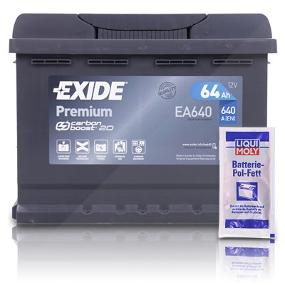 EXIDE - EAN: 4055548380363 - Exide EA640 Premium Carbon Boost 64Ah 640A+10g Pol-Fett (EA640) - Technische Informationen: EXIDE Starterbatterie Gewicht:15,74 Kg | Länge: 242 mm | Breite: 175 mm | Höhe: 190 mm] Leistungsdaten: Spannung: 12V | Batteriekapazität: 64 Ah |... - bei atp-autoteile.de - aus Yadore Produktdaten Diese wartungsfreie Autobatterie ist sofort einsatzbereit und bietet Komfort für den Nutzer. ![]() ![]() Autobatterie 12 - Volt 64 eBay Ah Exide Premium Wartungsfrei sofort Einsatzbereit NEU