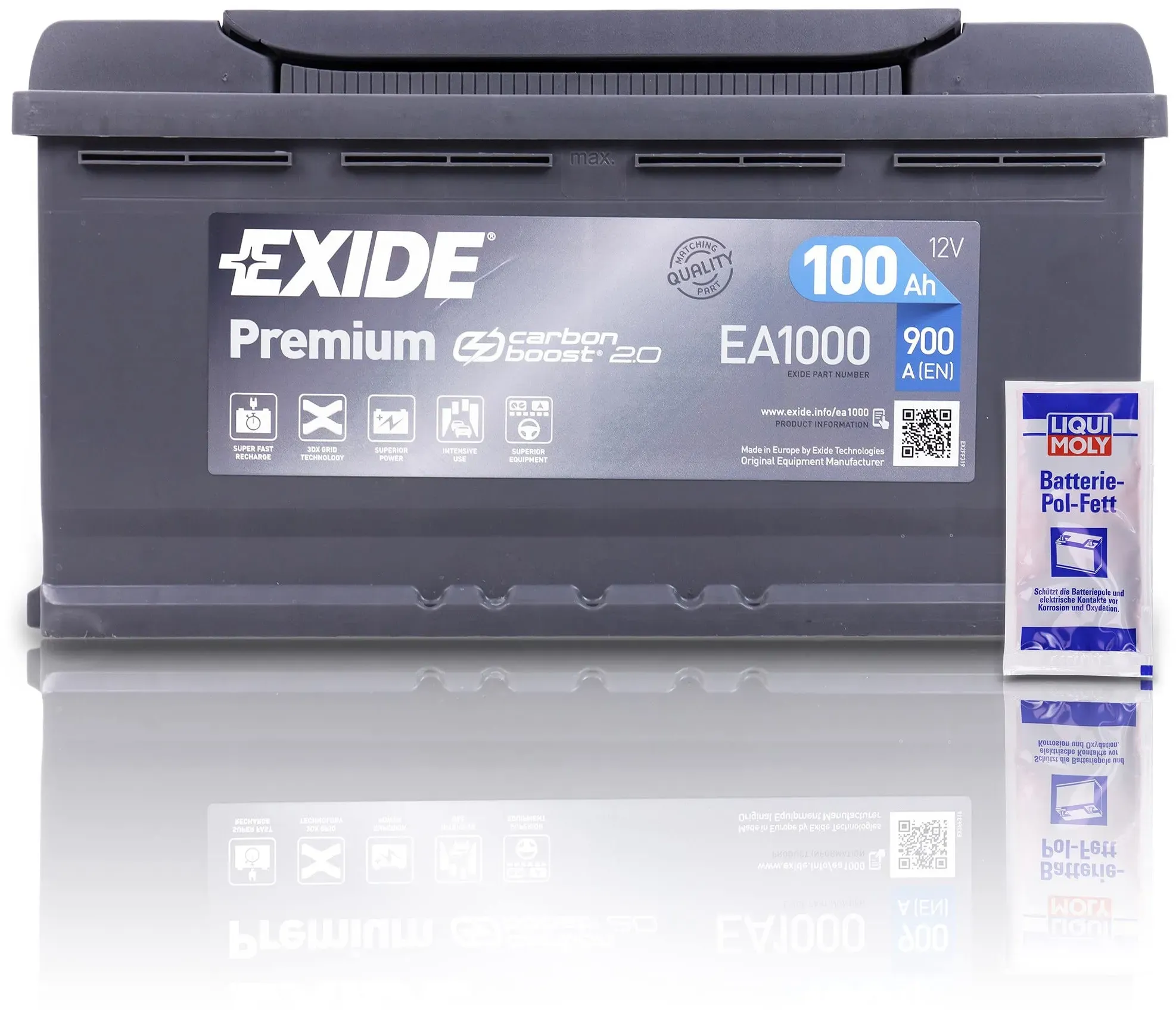 Zustand: Neu - Autobatterien - Exide - EA1000 CARBON BOOST EA-1000 - EAN: 3661024024587 - - 3 Händler im amazon.de Marketplace Ein beliebtes Angebot auf Amazon, das die Exide EA1000 Premium Superior Power Batterie zu einem wettbewerbsfähigen Preis anbietet. ![]() ![]() Exide EA1000 Premium Superior Power Autobatterie, lead acid, 12V 100Ah 900A (EN)