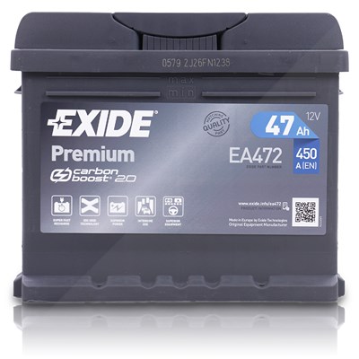 EXIDE - EAN: 4055548379947 - Exide EA472 Premium Carbon Boost 47Ah 450A+10g Pol-Fett (EA472) - Technische Informationen: EXIDE Starterbatterie Gewicht: 12,14 Kg | Länge: 207 mm | Breite: 175 mm | Höhe: 175 mm] Leistungsdaten: Spannung: 12V | Batteriekapazität: 47 Ah |... - bei atp-autoteile.de - aus Yadore Produktdaten Dieses eBay-Angebot ist attraktiv, da es die Exide EA472 Premium Carbon Boost 12V 47Ah 450A Autobatterie inklusive 7,50 € Pfand zu einem fairen Preis anbietet. ![]() ![]() Exide EA472 - Premium Carbon eBay Boost 12V 47Ah 450A Autobatterie inkl. 7,50 € Pfand