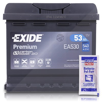 Zustand: Neu - Autobatterien - Exide EXIDE - EA530 EA530-L1 - EAN: 3661024034203 - Kapazität (Ah): 53Ah Kälteprüfstrom: 540A Spannung 12V Maße (L x B x H): 207 x 175 x 190 mm Batterietechnologie: Nassbatterie EAN: 3661024034203 - Verkäufer: VOLTIMAX im amazon.de Marketplace ![]() ![]() Exide Premium - CARBON BOOST eBay 2.0 EA530 12V 53Ah Autobatterie Starterbatterie