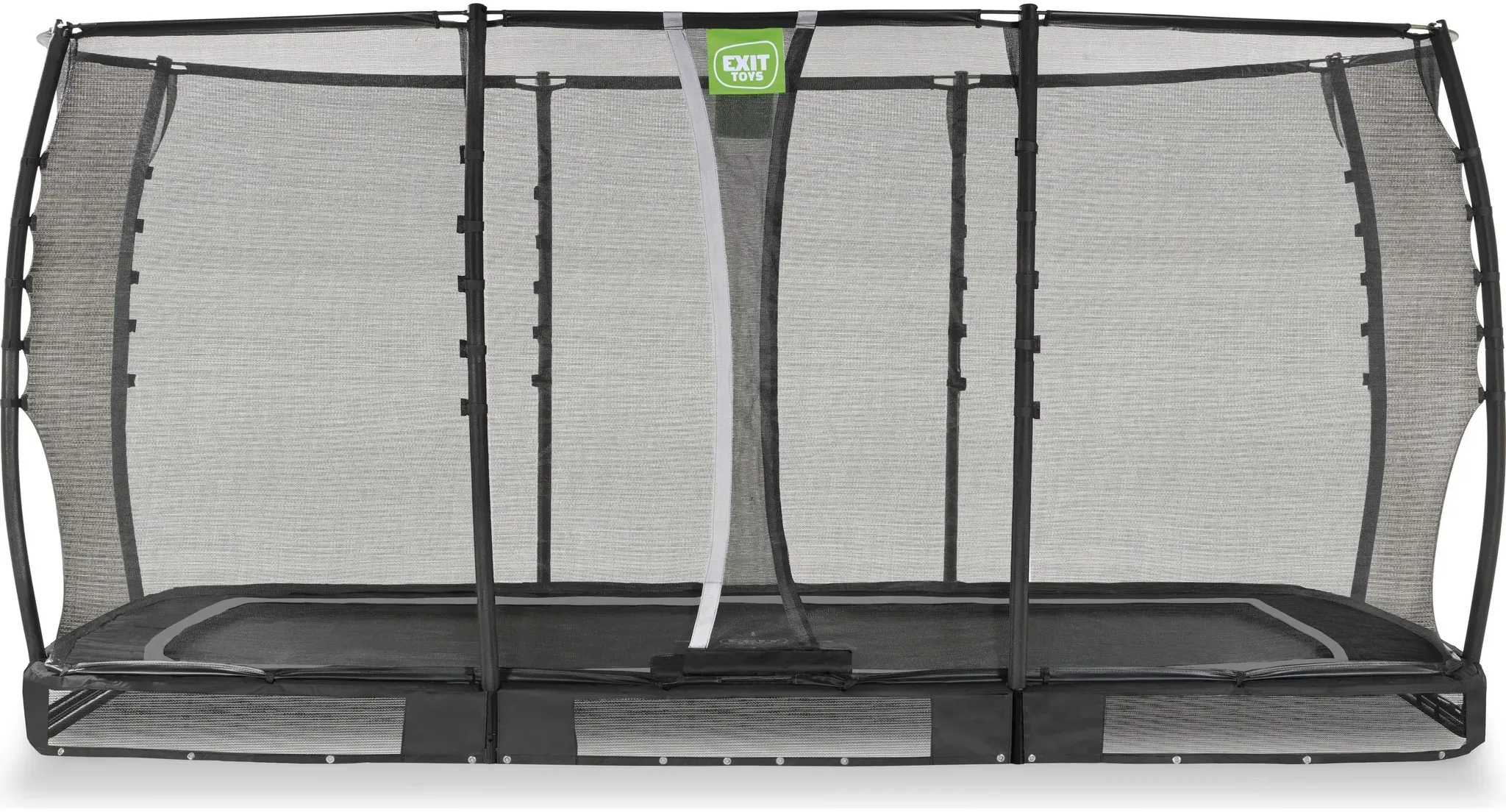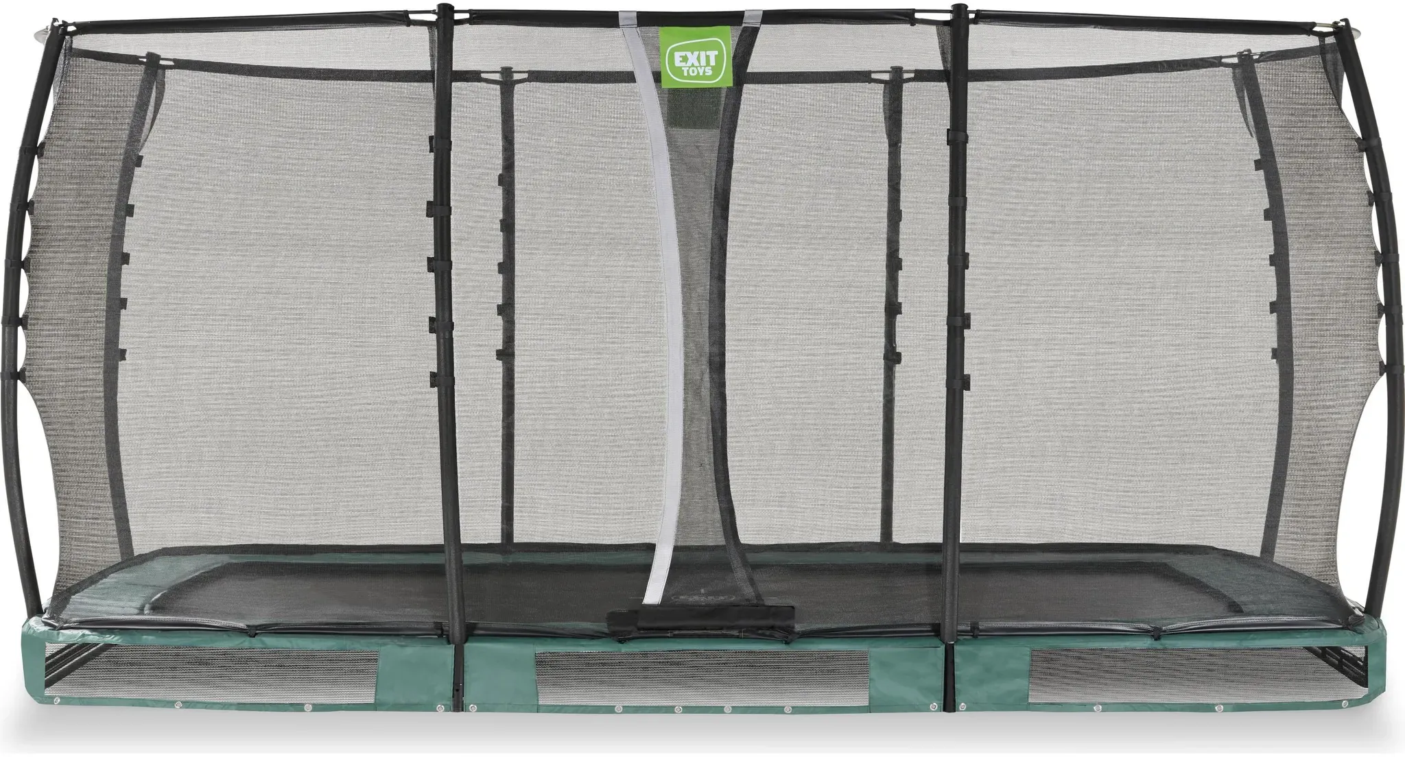 6 Händlerangebote bei billiger.de - Kategorie: Trampoline - EXIT TOYS - Das EXIT Allure Premium Bodentrampolin ist ein Bodentrampolin mit Schutzrand und einem Premium Sicherheitsnetz. Dank des EXIT Foot Protection Systems (FPS), einem Netz zwischen dem Sprungtuch und dem Schutzrand des Trampolins, geraten Trampolinspringer nie mit den Füßen zwischen die Sprungfedern. Das Allure Bodentrampolin wird zum Teil eingegraben und ist dadurch für alle einfach zu betreten. Darüber hinaus wird das Trampolin mit einem Premium Sicherheitsnetz geliefert. Das Sicherheitsnetz hat einen überlappenden Eingang, der automatisch schließt, sodass er nie unbemerkt offen stehen bleiben kann. Die Rohre des Sicherheitsnetzes sind außerdem mit hochwertigem XPE-Schaumstoff überzogen. Die extra langen, doppelkonische Federn von nicht weniger als 21,6 cm sorgen für den perfekten Sprung und eine weiche Landung. Durch den galvanisierten und pulverbeschichteten Rahmen hat das Trampolin eine lange Lebensdauer. Glasfiberringe und gebogene Rohre halten das Sicherheitsnetz super straff in Form und der extra dicke Schutzrand mit einer wasserabweisenden Pvc-Schicht schützt sowohl dich als auch das Trampolin optimal. - GTIN:8720289694470 ![]() ![]() EXIT TOYS EXIT Allure Premium Trampolin 244x427cm - grün