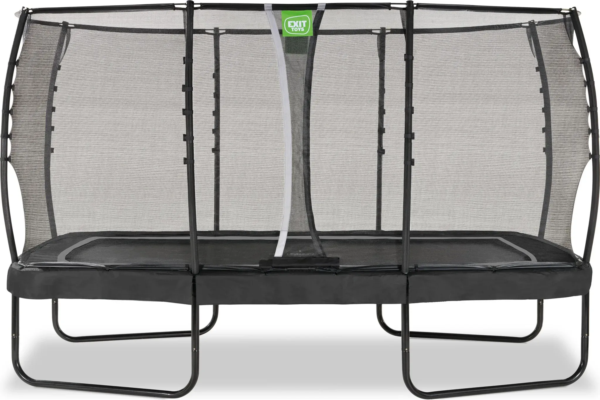 6 Händlerangebote bei billiger.de - Kategorie: Trampoline - EXIT TOYS - Das EXIT Allure Premium Trampolin ist ein Trampolin mit einem Schutzrand und einem Premium Sicherheitsnetz. Dank des EXIT Foot Protection Systems (FPS), einem Netz zwischen dem Sprungtuch und dem Schutzrand des Trampolins, geraten Trampolinspringer nie mit den Füßen zwischen die Sprungfedern. Das mitgelieferte Premium Sicherheitsnetz hat einen überlappenden Eingang, der sich automatisch schließt. Die Rohre des Premium Sicherheitsnetzes sind außerdem mit hochwertigem XPE-Schaumstoff überzogen. Die extra langen, doppelkonische Federn von nicht weniger als 21,6 cm sorgen für den perfekten Sprung und eine weiche Landung. Durch den galvanisierten und pulverbeschichteten Rahmen hat das Trampolin eine lange Lebensdauer. Glasfiberringe und gebogene Rohre halten das Sicherheitsnetz super straff in Form und der extra dicke Schutzrand mit einer wasserabweisenden Pvc-Schicht schützt sowohl dich als auch das Trampolin optimal. - GTIN:8720289694371 ![]() ![]() EXIT TOYS EXIT Allure Premium Trampolin 244x427cm - schwarz