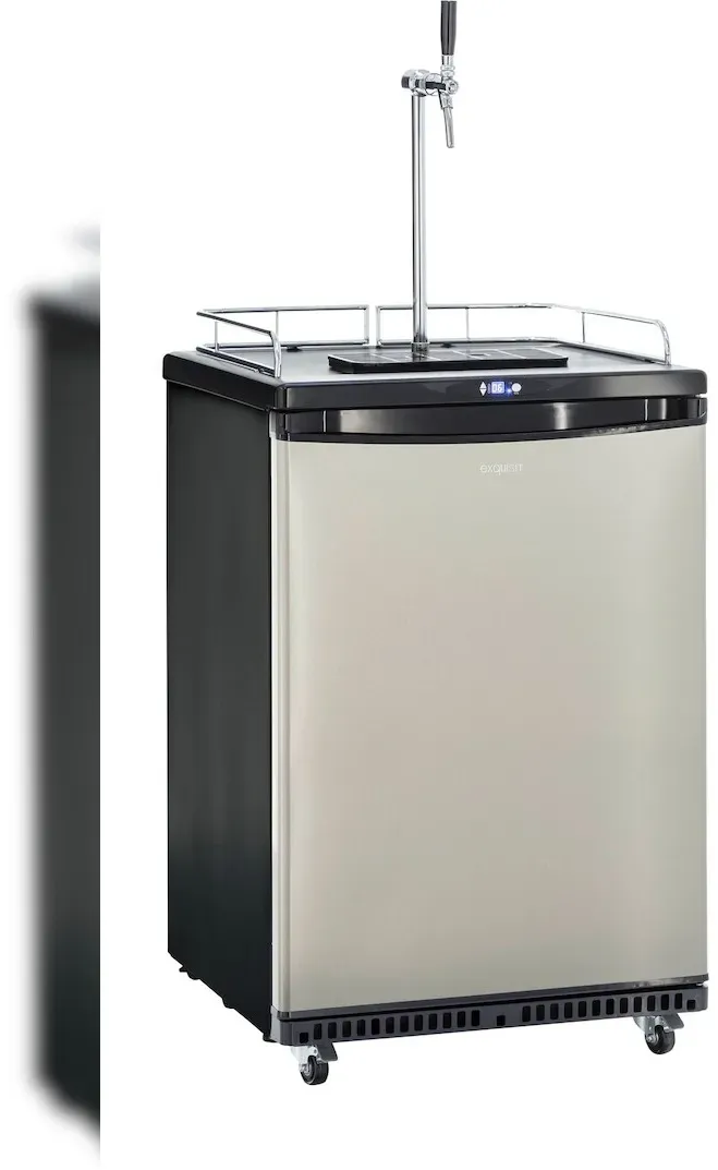 Exquisit - EAN: 4016572407723 - Großer Innenraum für maximale Vielfalt: Mit 163 Litern Volumen bietet der Kühler Platz für Bierfässer von 10 bis 50 Litern perfekt für jede Gelegenheit und jeden Durst.Frisch gezapftes Bier jederzeit genießen: Die integrierte Zapfvorrichtung macht das Ausschenken direkt am Gerät zum Erlebnis ideal für Partys, Terrasse oder Kellerbar.Leise, stark und sparsam im Betrieb: Mit nur 42 dB arbeitet der Bierkühler angenehm geräuscharm ideal für Wohnräume, ohne den Alltag zu stören.Flexible Nutzung mit durchdachten Details: Türanschlag wechselbar, Gitterablage für Flaschen, modernes LED-Display einfach das, worauf es ankommt.Praktisch durchdacht für echten Nutzen: Halterung für CO2-Flasche sorgt für stabile Zapfleistung und freie Innenraumfläche clever gelöst für mehr Komfort beim Kühlen. ProduktbeschreibungDer Bierkühler BK160-HE-300G inox von Exquisit ist die perfekte Lösung für alle, die zu Hause, im Partykeller oder bei Veranstaltungen nicht auf frisch gezapftes Bier verzichten möchten. Mit einem großzügigen Nutzinhalt von 163 Litern bietet das Gerät Platz für Fässer von 10 bis 50 Litern und überzeugt durch eine integrierte Zapfvorrichtung, mit der das Ausschenken zum Kinderspiel wird. Eine spezielle Halterung für CO-Flaschen sorgt dabei für stabilen Zapfdruck und eine aufgeräumte Innenraumgestaltung. Die elektronische Temperaturregelung mit LED-Display ermöglicht eine präzise Steuerung zwischen 2 C und 8 C ideal für optimal gekühlten Biergenuss. ... ![]() ![]() Exquisit Bierkühler, 163 Liter, mit Zapfvorrichtung, Gitterablagen, Türanschlag wechselbar, 89 cm Höhe, 42 dB, Display, BK160-HE-300G inox