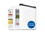 exquisit - EAN: 4016572417388 - Exquisit Mini Gefrierschrank GB540-050C weiss Kompakt Nutzinhalt: 31 L Temperaturregelung Ideal fürs Büro, Hotel- oder Gästezimmer. Der Exquisit Mini Gefrierschrank GB540-050C weiss eignet sich dank 31 Litern Nutzinhalt perfekt für Anwendungen im kleinen Bereich. Die Gerätemaße liegen bei 49,5 x 47,5 x 45,0 cm (HxBxT). Bei offener Tür beträgt die tiefe des Geräts 88,0 cm. Als Standgerät besticht der Mini Gefrierschrank vor allem mit einem modernen Look in Weiß. Ausstattung und Eigenschaften des Mini Gefrierschranks Die installierte Temperaturregelung des Mini Gefrierschranks sorgt für eine stressfreie Lagerung Ihrer Lebensmittel. Gefrierablagen (1) integriert. Das Gerät verfügt über 4* / -18 C (Sternekennzeichnung / Gefriertemperatur). Höhenverstellbare Füße (2 Vorne) ermöglichen das einfache Angleichen an den Untergrund und das Aufstellen an Ihrem Wunschort. Leistung und Technik Mit einem Energieverbrauch von 94,00 kWh/Jahr gehört der Mini Gefrierschrank der Energieeffizienzklasse C an. Die Geräuschentwicklung des Mini Gefrierschranks GB540-050C weiss beträgt 39 dB(A) re1pW. Durch die Stromkabellänge des Standgeräts von 160 cm ist für Sie eine hohe Flexibilität bei der Platzwahl gewährleistet. Exquisit - Einfach das, worauf es ankommt Exquisit steht als Marke für solide Qualität, zuverlässige Funktion und große Haltbarkeit. Und das alles zu einem fairen Preis ohne überflüssigen Schnick Schnack, ohne großes TamTam. Bei der Auswahl und ... ![]() Exquisit Mini-Gefrierschrank, Tiefkühlschrank, 31 Liter, 4-Sterne-Gefrierfach, Energieklasse C, klein und kompakt, GB540-050C schwarz