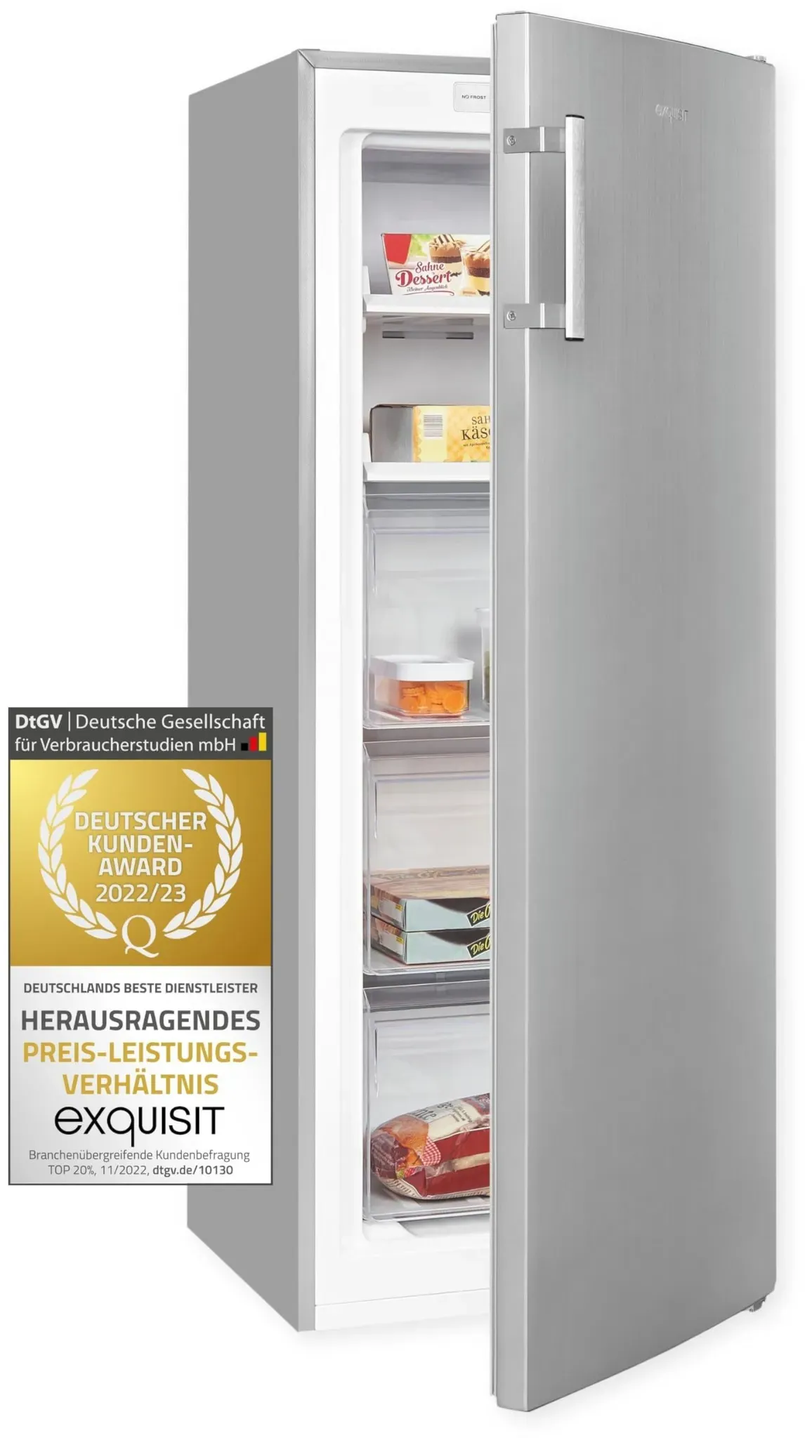 keine Angabe (Amazon Prime) Auf Lager Versand durch AmazonExquisit Gefrierschrank NoFrost, Tiefkühlschrank groß, 161 Liter, Schnellgefrieren, Alarm-Funktion, GS5231-NF-H-040C weiss