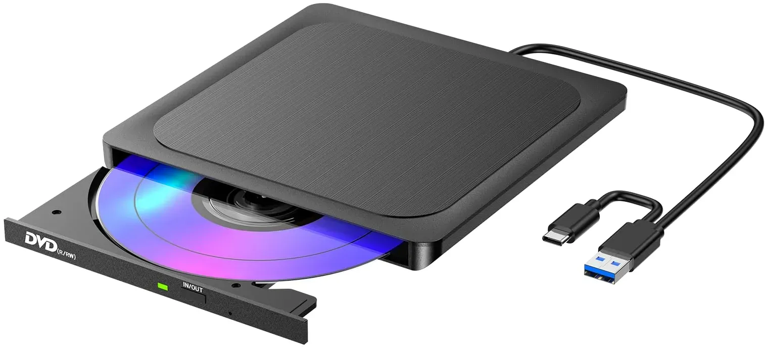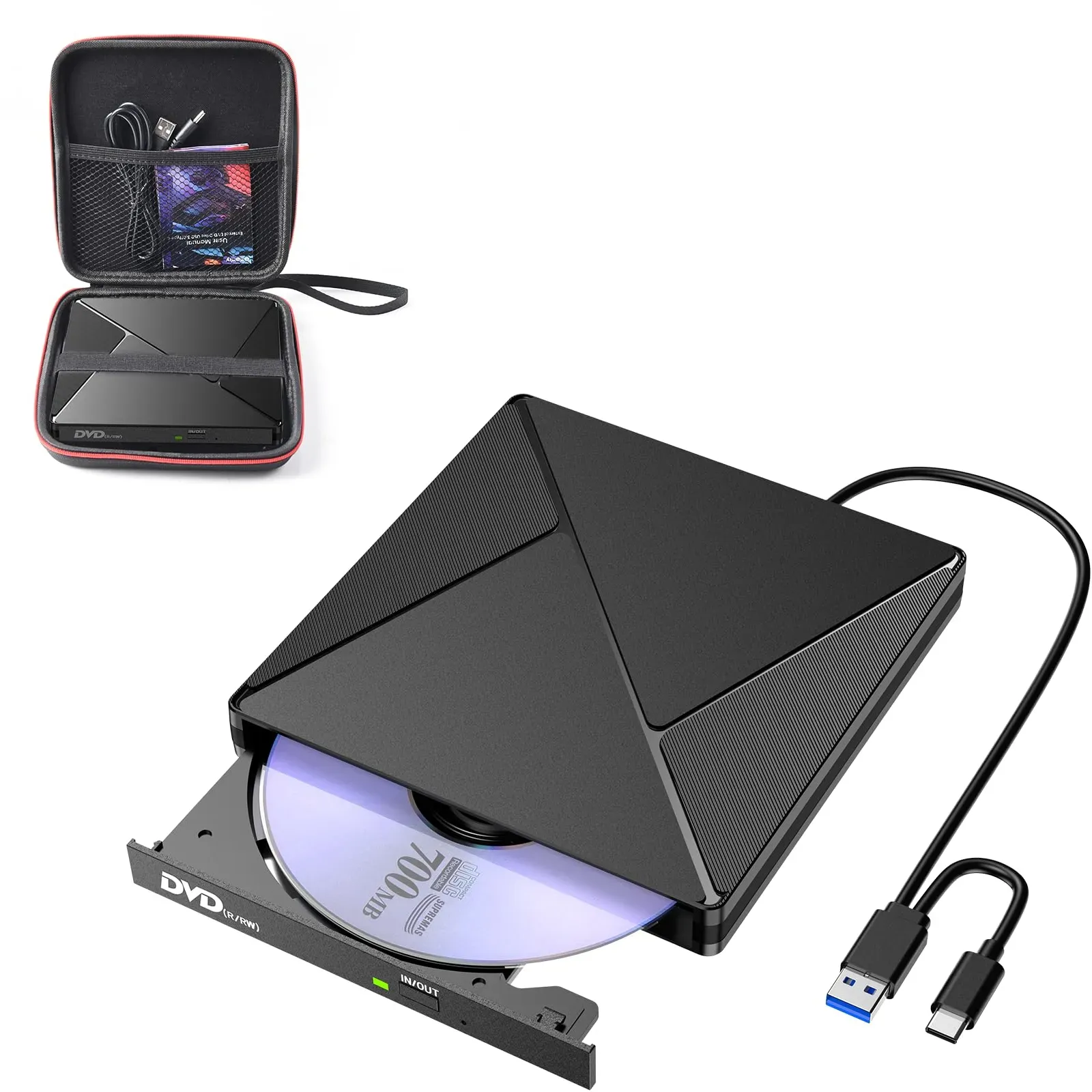 Auf Lager Versand durch AmazonExternes CD DVD Laufwerk, Ultra dünn USB 3.0 & USB-C CD/DVD Laufwerk Extern, CD DVD +/-RW ROM Brenner Optical External DVD Drive für Laptop, PC, Desktop, MacBook, Windows 11/10/8/7/XP/Linux/MacOS