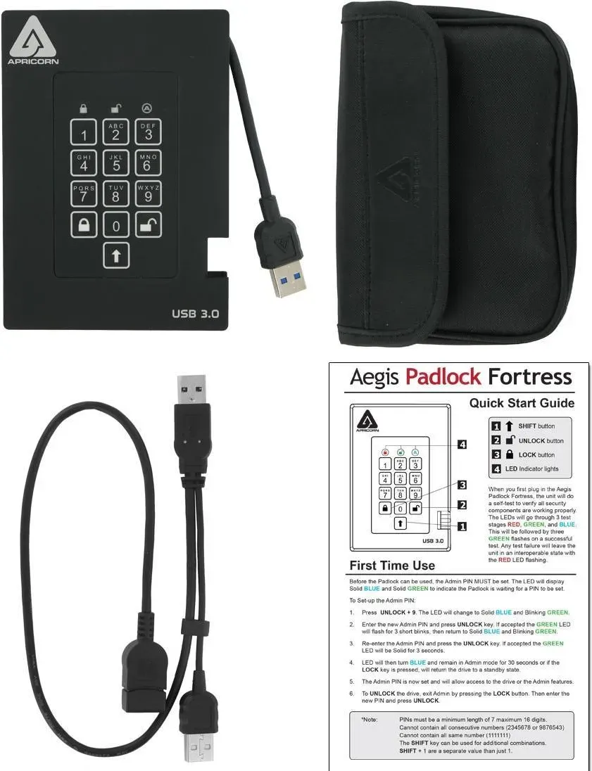 Kategorie: Externe Festplatten - Apricorn - GTIN:0708326913775 - 'Apricorn Aegis Padlock Fortress SSD verschlüsselt 256 GB extern tragbar 2.5\' 6,4 cm USB 3.0 FIPS 140-2 Level 2 256-bit AES-XTS' - 236,93 Euro bei voelkner Marktplatz - gefunden von billiger.de ![]() ![]()