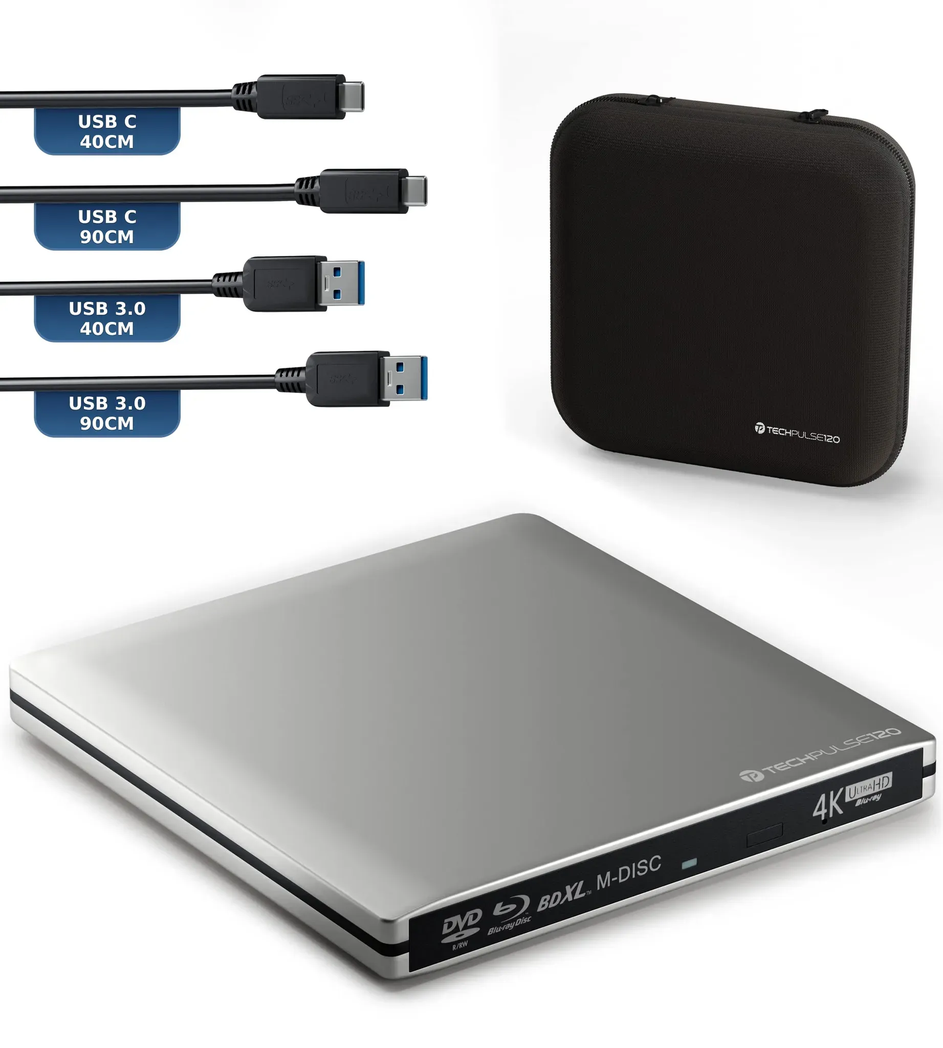 Verfügbarkeit: Auf Lager - Kategorie: Blu-ray-Laufwerke - NOLYTH - GTIN:0726133311935 - Ideale SpeichermedienNOLYTH 4k externes blu ray laufwerk unterstützt die neueste BDXL (BD Rom Multilayer Recording Technology), es ist ein echtes Speicherwunder, bis zu 128 GB, kann bis zu 182 CDs, 27 Standard-DVDs oder 5 Single-Layer-Blu-ray-Discs speichern . Blu ray Discs sind die perfekte Lösung für die Archivierung Ihrer Foto- und Videodateien. Leistungsstarke FunktionenDer blu ray laufwerk extern ist mit einer breiten Palette von Discs kompatibel. Speichern Sie bis zu 100 GB auf BDXL-Discs, 8,5 GB auf DVDs, bis zu 4,5 GB auf auf DVD und bis zu 4,7 GB auf Standard-DVDs. Das Blu ray CD DVD Laufwerk kann jede CD, DVD, Blu-ray-Disc und UHD lesen und beschreiben, einschließlich 3D, 4K UHD und M-Disc. Breite KompatibilitätExterner blu ray brenner kompatibel mit jedem Computer, Notebook, PC und MacOS! Zum Abspielen von UHD-Blu-ray-Filmen, die enorme Anforderungen an das gesamte System stellen, empfehlen wir 'CyberLink PowerDVD', eine Software von Drittanbietern, die zusätzlich erworben werden muss und die einzige zuverlässige Software ist, die wir gefunden haben. Unter macOS gibt es keine offizielle Abspielsoftware, um gekaufte UHD-Filme abzuspielen! Plug and PlayDieses blu-ray laufwerk wird über einen USB 3.0- und Typ-C-Anschluss mit Strom versorgt, Kein DVD-Treiberprogramm oder zusätzliches Netzteil erforderlich. Schließen Sie einfach ein USB-Kabel an, um loszulegen, ... Dieses techPulse120-Laufwerk bietet eine umfassende Ausstattung mit UHD 4K, 3D, M-DISC, BDXL und HDR10 Unterstützung in einem hochwertigen Aluminiumgehäuse. ![]() ![]() techPulse120 Externes USB 3.1 USB-C UHD 4k 3D M-DISC Blu-ray DVD CD BDXL HDR10 128GB Laufwerk Brenner Burner Superdrive BD Imperator Paket Tasche 90cm Anschlusskabel Aluminium Silber