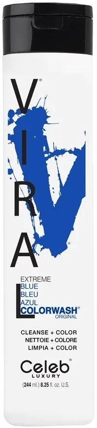 2 Händlerangebote bei billiger.de - Kategorie: Coloration - Celeb Luxury - Mit dem Celeb Luxury Extreme Blue Colorwash aus der Viral Colorwash Serie können Sie Ihrem Haar einen kräftigen, auffallenden Blauton verleihen, der alle Blicke auf sich zieht. Um einen strahlenden, intensiven Blauton zu erreichen, muss die Haarfarbe vor der Anwendung zu einem sehr hellen Blond oder Weiß aufgehellt werden. Die Farbwäsche gibt bei jeder Haarwäsche Farbe ab und schützt die Farbfarbe vor dem Auswaschen oder Verblassen. Auf Ammoniak, Peroxid, PPD, Sulfate und Parabene wurde zum Wohl von Haar und Kopfhaut verzichtet. So wenden Sie das Celeb Luxury Extreme Blue Colorwash an Vor der Anwendung der Viral Colorwash werden die Haare mit dem Luxury Blonditioner gepflegt. Anschließend verteilen Sie eine großzügige Menge der Colorwash gleichmäßig im nassen Haar und massieren sie ein, bis ein fester, dicker Schaum entsteht. Anschließend können Sie das Produkt gründlich mit lauwarmem Wasser ausspülen. Um die Intensität der Farbe zu verstärken, kann die Farbwäsche zwei- bis dreimal nacheinander angewendet werden.Mit der Extreme Blue Colorwash können Sie zudem tolle Multi-Color-Effekte erzeugen, indem Sie unterschiedliche Farbsträhnen abtrennen und für jede die gewünschte Farbe anwenden. Oder Sie verschmelzen Ihre helle Haarfarbe mit dem Colorwash. - GTIN:0814513023681 Dieses Produkt ist eine gute Wahl für alle, die eine Farbpflege für blaues Haar suchen. ![]() ![]() Celeb Luxury Celeb Viral Extreme Colorwash Blue 244 ml