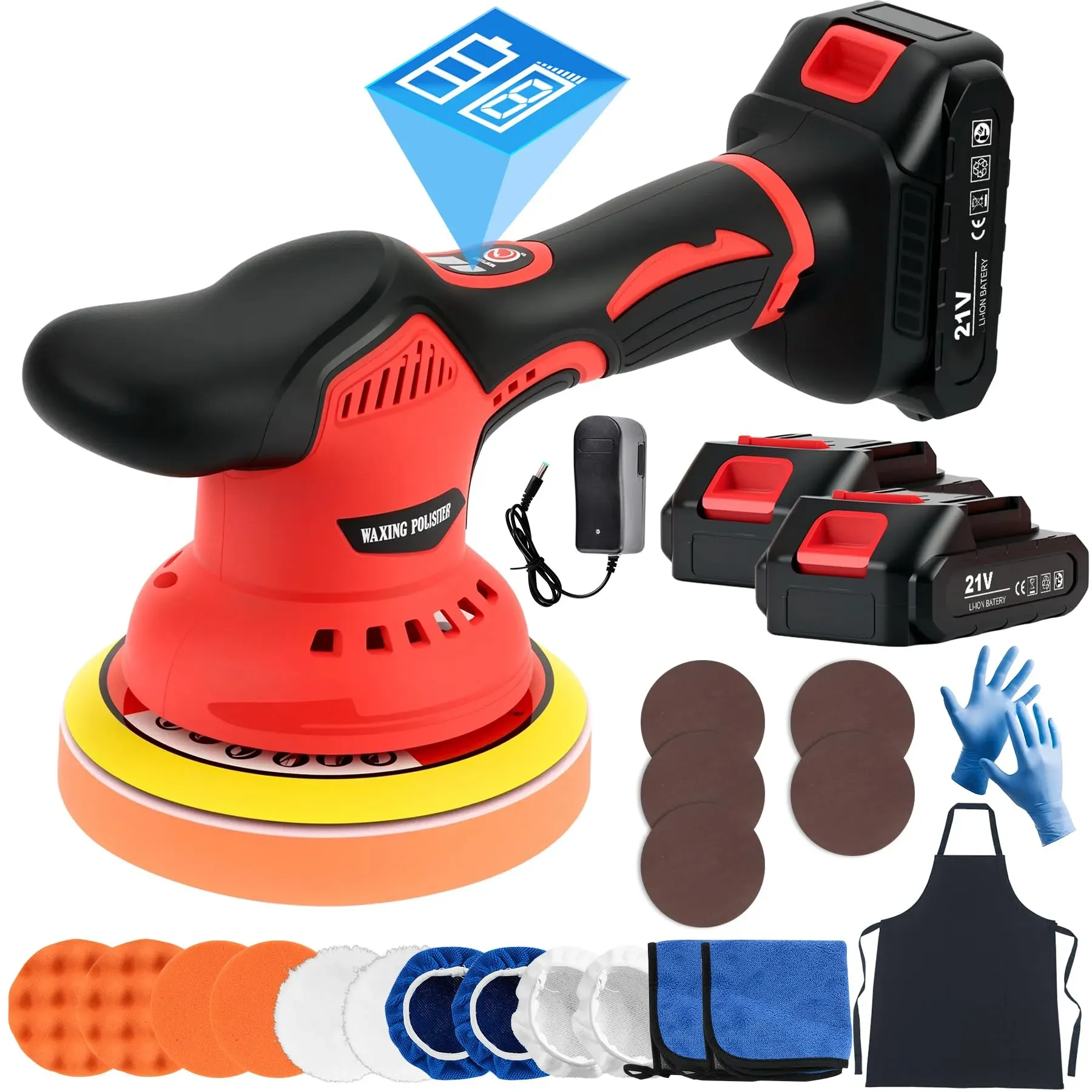 Auf Lager Versand durch AmazonPoliermaschine Auto Akku 8 Variable Geschwindigkeiten, 6 Inch Exzenter Poliermaschine Klein Auto 5500RPM mit 2*21V Batterie und 22pcs Aufsätze, Mini Car Polishing Machine Set für Auto Detailpflege