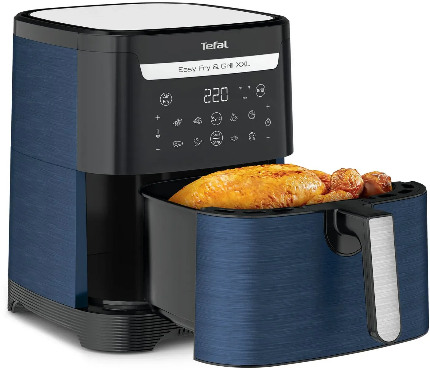 keine Angabe Gewöhnlich versandfertig in 4 bis 5 TagenTefal Easy Fry & Grill XXL Heißluftfritteuse, 6,5 L Fassungsvermögen, 2-in-1 Technologie Heissluftfritteuse & Grill, zeitsparend, 8 automatische Garprogramme, Grill-Technologie, Blau, EY8014