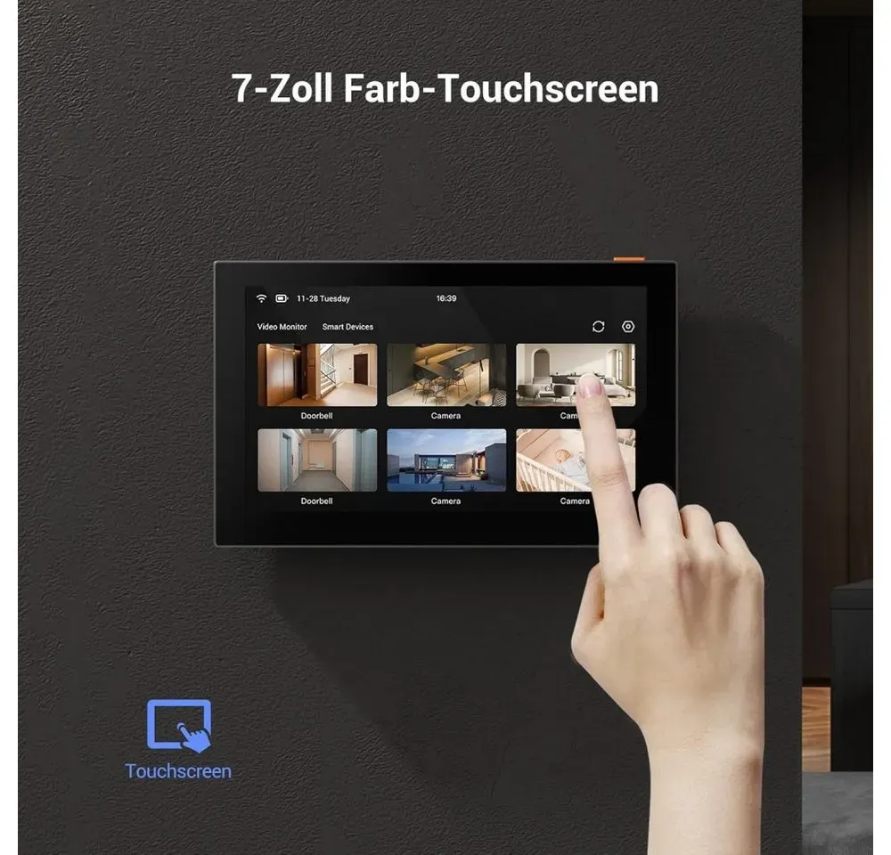 Videoeintrag Gegensprechanlagen Sonstige - EAN:6941545630304 - Der EZVIZ SD7 Smart Monitor ist die ideale Steuerzentrale fr Ihr Heimsicherheitssystem. Ausgestattet mit einem 7-Zoll-IPS-Touchscreen knnen Sie bis zu 30 EZVIZ-Gerte gleichzeitig verwalten und berwachen, darunter Gegensprechanlagen, Trklingeln, intelligente Schlsser und Kameras. Der eingebaute 4.600 mAh-Akku und die 2,4 GHz-WLAN-Konnektivitt gewhrleisten eine einfache und flexible Installation ohne aufwndige Verkabelung. Dank Zweiwegekommunikation und Fernsteuerung ber die EZVIZ-App knnen Sie von berall aus mit Ihren Gerten interagieren. Der Ezviz SD7-Monitor ist mit dem HP7-Video-Gegensprechanlagen-Kit kompatibel Zentralisierte Verwaltung : Steuern Sie bis zu 30 EZVIZ-Gerte ber eine einzige Schnittstelle. Einfache Installation : Dank eingebautem Akku und WLAN ist keine Verkabelung erforderlich. Flexibilitt bei der Platzierung : Kann als Handgert, zur Wandmontage oder als Tischstnder verwendet werden. Zwei-Wege-Kommunikation : Sprechen und hren Sie ber den Monitor mit dem eingebauten Mikrofon und Lautsprecher. Fernbedienung : Verwalten Sie Ihre Gerte von berall ber die EZVIZ-App. Packungsinhalt 1 x EZVIZ SD7 Smart Monitor 1 x USB-Typ-C-Kabel 1 x Wandhalterung 1 x Schraubensatz 1 x Installationsaufkleber 1 x doppelseitiger Aufkleber 1 x Kurzanleitung Merkmal Detail Modell CS-SD7-R100-1WTC Bildschirmgre 6,97 Zoll (IPS-Touchscreen) Auflsung 1024 x 600 Pixel Schlagzeug 4.600 mAh, wiederaufladbar ber USB Typ-C ... Dieses Angebot von hagebau.de betont die App-Steuerung, was für Smart-Home-Nutzer interessant ist. ![]() ![]() EZVIZ überwachungsmonitor »SD7«, 7", per App steuerbar - schwarz