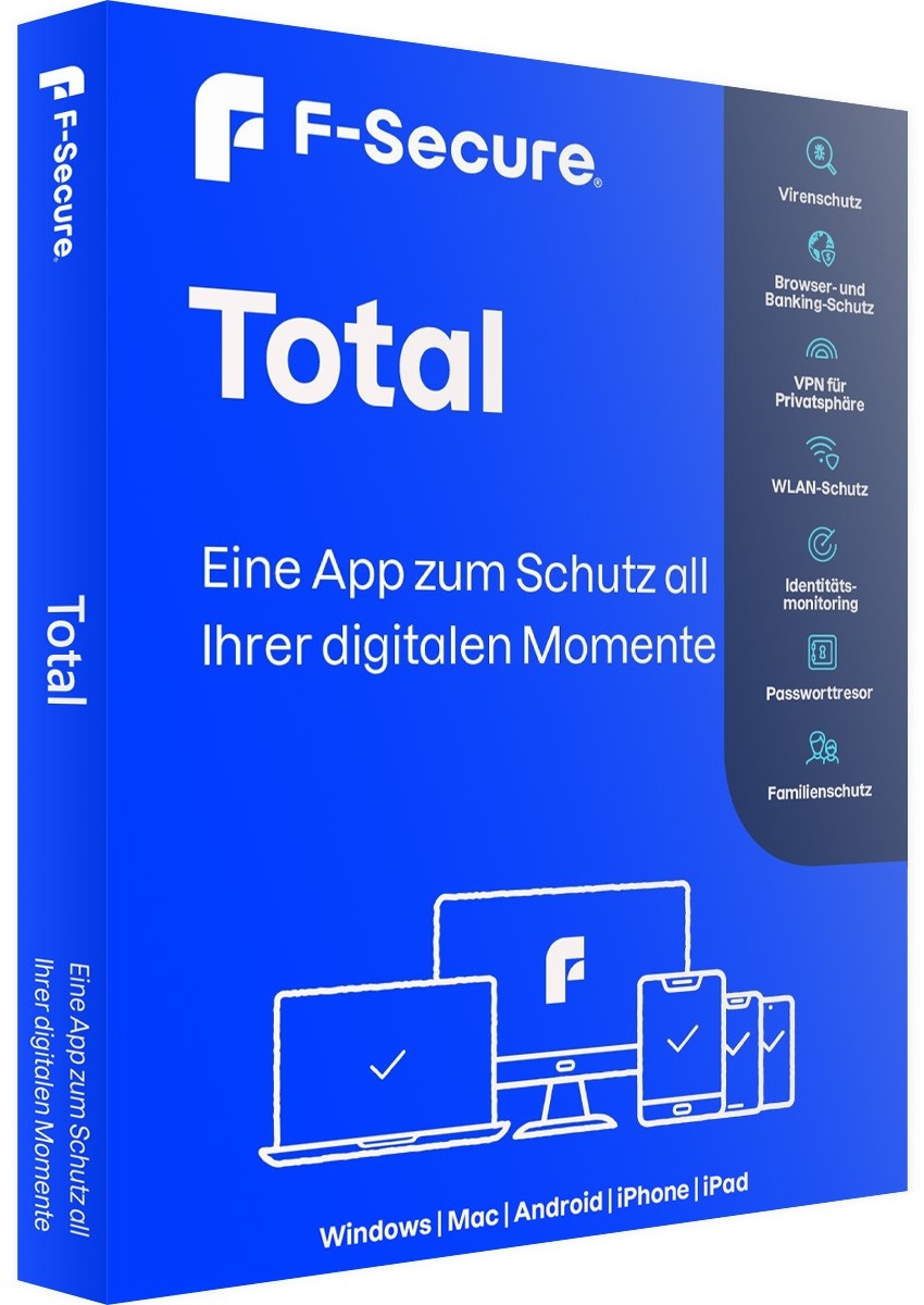 F secure total META PreisvergleichMit dem Meta-Preisvergleich suchen Sie gleichzeitig bei den großen Preisvergleich Portalen!Jetzt live Suche nach f secure total starten! F secure total KaufberatungF-Secure Total ist eine umfassende Sicherheitslösung, die Virenschutz, Internet Security, VPN, Passwortmanager und Identitätsschutz in einer Suite kombiniert. Sie schützt vor Viren, Malware, Ransomware, Phishing und Identitätsdiebstahl und bietet zusätzlich einen integrierten VPN-Dienst für anonymes und sicheres Surfen, auch in öffentlichen WLANs[1][2][3]. Wichtige Produktmerkmale von F-Secure Total sind: