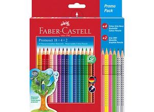 Büro- Schreibwaren Wohnen Arbeiten - - Wenn die Fantasie keine Grenzen kennt: die FABER-CASTELL Colour Grip Buntstifte farbsortiert, 24 St.Die FABER-CASTELL Colour Grip Buntstifte farbsortiert, 24 St. sind für die Schule einfach unersetzlich. Unterstreichen, Skizzieren, Colorieren - für alle Arten von kreativen Tätigkeiten ist dieser Artikel perfekt geeignet. Da der Artikel für Kleinkinder geeignet ist, können auch schon die ganz Kleinen damit malen.Große FarbvielfaltDamit man für schöne Bilder stets das ideale Malutensil zur Hand hat, kommt das Set mit einer passenden Auswahl zu Ihnen und enthält folgende Bestandteile: 18 Bunstifte 4 Neon Bunstifte 2 Bleistifte.Für eine besonders hohe BruchfestigkeitEinen sorglosen und unbeschwerten Mal- und Zeichenspaß rt das Produkt wegen seiner bruchfesten Mine mit Spezialverleimung, die somit besonders widerstandsfähig ist.Das ist besondersWerfen Sie einen Blick auf diese besondere Eigenschaft des Artikels: Für Rechts- und Linkshänder geeignet.Angenehme HandhabungDer Stiftschaft ist dreikantig, sodass die Finger automatisch eine lockere, entspannte Haltung einnehmen können. Gerade für kleine Malanfänger/innen ist dies ein großer Vorteil. Und weil der Schaft den gewohnten Stiftumfang besitzt, lässt sich der Artikel mit einem handelsüblichen Spitzer anspitzen.Klingt gut, richtig?Dieses 'Made in Germany'-Produkt zeugt von hohem Qualitätsstandard. Schön verpackt in einem praktischen Karton-Etui kommen die FABER-CASTELL Colour Grip ... Dieses 24er-Set ist eine beliebte Wahl und bietet ein gutes Preis-Leistungs-Verhältnis. ![]() FABER-CASTELL Colour GRIP Buntstifte farbsortiert, 24 St.