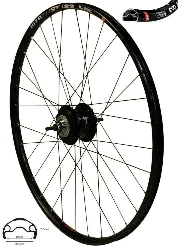 Kategorie: Fahrrad-Laufräder - Redondo - GTIN:4251196311838 - REDONDO 26 Zoll Hinterrad WTB Felge Schwarz mit Alfine 11 Gang Nabenschaltung Modell: ST i23, Tubeless kompatibel, Material: Aluminium 6061-T6, Größe: 26' 559-23, Felgenbreite innen: 23 mm, Typ: Hohlkammerfelge, Speichenlöcher: 32 Loch, Ventillochung: 8,5 mm ösen: Einfach geöst, für Scheibenbremsen, empfohlene Reifenbreite: 37 62 mm, Speichen Durchmesser: 2,00 mm Typ: Alfine 11 SG-S7001-11, Gänge: 11-Gang, für Scheibenbremsen, Disc Brake Aufnahme: Centerlock, 18-Zahn Ritzel, mit Vollachse, inklusive Befestigungsschrauben Lochzahl: 32 Loch, Einbaubreite: 135mm, inkl. Zubehör: Schaltgriff Nexus Alfine 11, Bowdenzug, 18- Zahn Ritzel, Schaltzubehör und Kleinteile - 415,99 Euro bei Amazon Marketplace Sports - gefunden von billiger.de Ein hochwertiges 28-Zoll Hinterrad mit Alfine 11-Gang und Scheibenbremsen, ideal für anspruchsvolle Fahrer. ![]() ![]() Taylor-Wheels 28 pulgadas rueda trasera bici A319 frenos Disco ALFINE 11 Negro