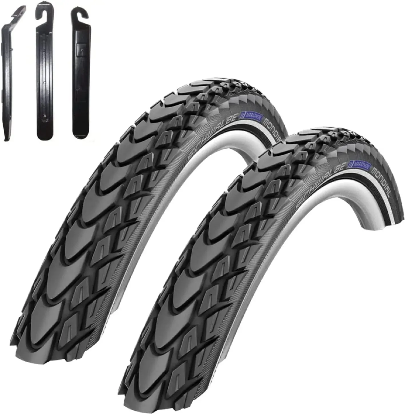 Kategorie: Fahrradreifen & -schläuche - GTIN:0729389469481 - Kurzbeschreibung: Stückzahl: 2 Stück Material: hochwertige Gummimischung, 180 tpi Karkasse (3 Lagen) Typ: Drahtreifen Farbe: schwarz Grösse: 47-622/ 28x1.75) Extras: SafetyPlus Breaker Pannenschutz: Safety Plus Breaker Pannenschutz 3M-Reflexstreifen Max.Druck: 4 bar Modell: 0101007 - 54,99 Euro bei Amazon Marketplace Sports - gefunden von billiger.de Ein 2er-Pack Schwalbe Marathon Mondial Performance Reifen mit RaceGuard Pannenschutz, perfekt für lange Reisen und anspruchsvolles Terrain. ![]() ![]() maxxi4you 2 x Schwalbe Marathon Mondial Performance Fahrradreifen RaceGuard E-25 Fahrrad Mantel Decke 37-622 (28 x 1,40") inkl. Reifenheber
