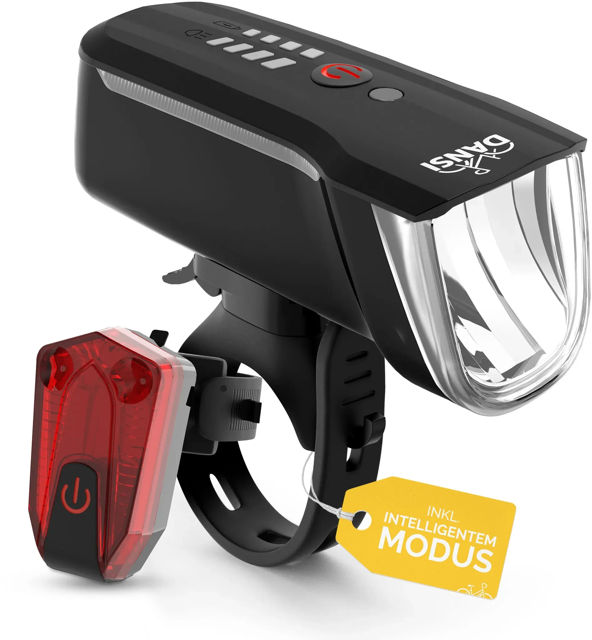 Verfügbarkeit: Auf Lager - Kategorie: Fahrradlampen - Büchel - GTIN:4260629695674 - DEIN LICHT FüR JEDE FAHRT: Ob City-Commute, Abendrunde oder dunkle Landstraße das Fahrradlicht Set bietet mit vier Leuchtstufen (15, 30, 45 oder 60 Lux) optimale Sicht für Stadt, Tour oder Landstraße ideal für alle Lichtverhältnisse. STARKER AKKU & USB-C LADEFUNKTION: Das Fahrrad Lichter LED Set im praktischen 2er Pack ist per USB-C wiederaufladbar (Kabel inklusive) und bietet bis zu 8h Leuchtdauer ideal für Alltag, Pendelstrecken oder Touren. IMMER ALLES IM BLICK: Die integrierte LED-Anzeige am Frontlicht zeigt dir zuverlässig den Akkustand und den aktuellen Leuchtmodus perfektes Fahrradbeleuchtung Set für mehr Sicherheit und Planung auf jeder Strecke. SEKUNDENSCHNELL MONTIERT: Dank werkzeugfreier Quick-Release-Halterungen ist das Fahrradlampe Set schnell montiert und abgenommen ideal für unterwegs, im Alltag oder zum Schutz vor Diebstahl. STVZO-KONFORM & FLEXIBEL: Ob Citybike, Rennrad oder Tourer das Licht Fahrrad LED Set erfüllt die StVZO-Vorgaben und bietet dir Sicherheit bei jeder Fahrt. Das Rücklicht ist zudem um 90° drehbar für flexible Montagepositionen. - 29,99 Euro bei Amazon Marketplace Sports - gefunden von billiger.de Dieses Set bietet eine gute Balance aus Helligkeit (60, 30 & 15 Lux), USB-C-Ladefunktion und automatischer Lichtanpassung für verschiedene Bedingungen. ![]() ![]() DANSI LED Fahrradlicht Set - StVZO Zugelassenes Fahrrad Licht mit 60, 30 & 15 Lux |USB C Wiederaufladbares vLED Fahrradlicht Vorne+Hinten |Automatische Lichtanpassung & Werkzeuglose Montage| Regenfest