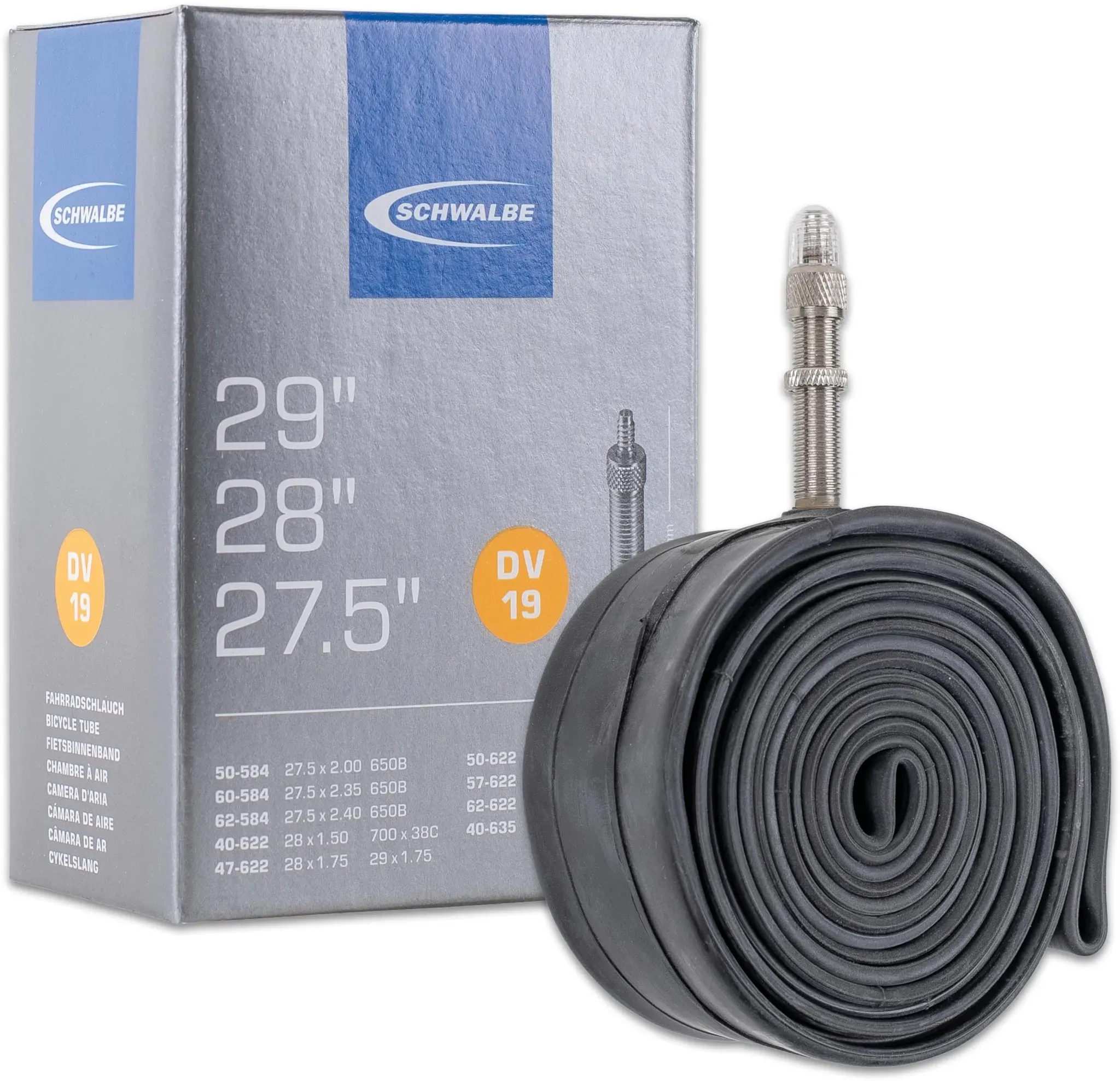 keine Angabe Versand durch AmazonSchwalbe Schlauch Nr. 19 ? Fahrradschlauch 27,5/28/29 Zoll (ETRTO 40/62-584/635) ? Ventil DV 40mm ? Standard Butylschlauch ? Schlauch für Fahrrad