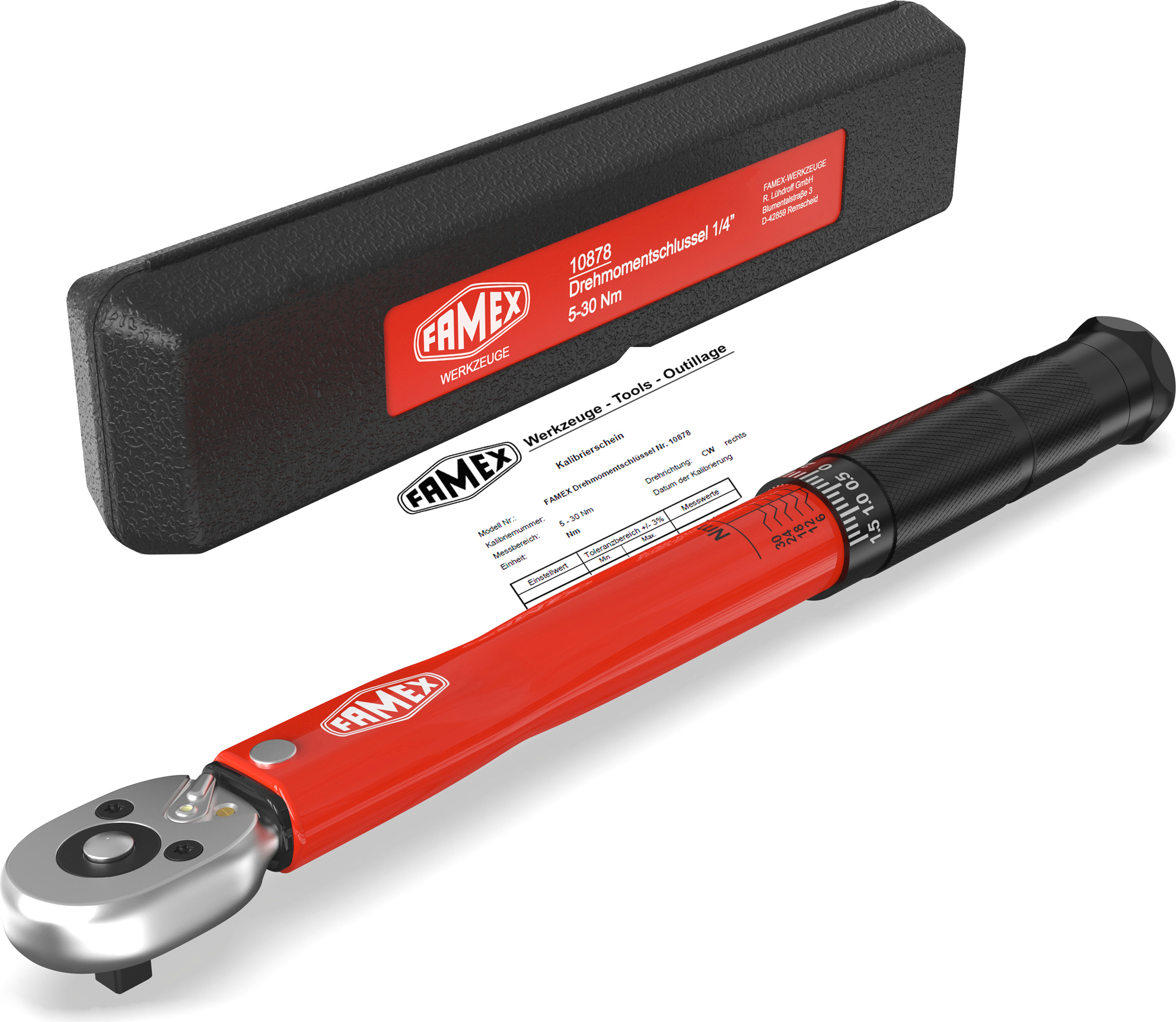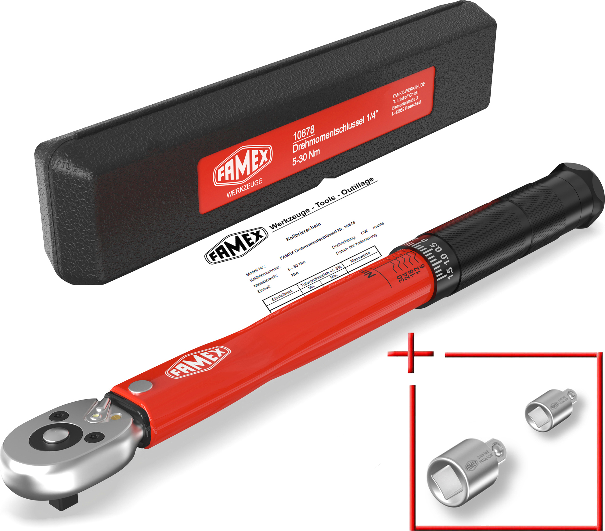 lieferbar-in 2-3 Werktagen bei dirFAMEX Drehmomentschlüssel 10878-2A Drehmomentschlüssel 1/4 Zoll, 5-30 Nm (auf 3% kalibriert, vor Auslieferung zusätzlich geprüft), mit Kalibrierschein, Fahrrad, Adapter
