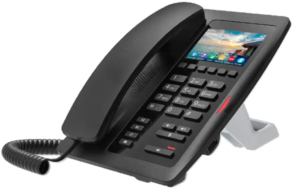 1 Händlerangebote bei billiger.de - Kategorie: VoIP Telefone - Fanvil - Fanvil H5W-Black WiFi Hotel Phone / SIP / POE / Wi-Fi Das Fanvil H5W-Black ist ein elegantes SIP-Hoteltelefon mit integrierter WLAN-Funktion für maximale Flexibilität bei der Installation. Mit seinem hochwertigen Design in edlem Schwarz passt es perfekt in moderne Hotelzimmer. Ausgestattet mit einem Farbdisplay und frei programmierbaren Tasten bietet es Komfort für Gäste und effiziente Verwaltung für das Personal. 'Premium-Komfort und moderne VoIP-Technologie für Ihr Hotel.' Highlights - Integriertes WiFi kabellose Anbindung ohne Netzwerkinstallation - Farbdisplay 3,5' LCD für Informationen und Branding - 6 programmierbare Softkeys individuelle Tastenbelegung (z. B. Rezeption, Zimmerservice) - Elegantes schwarzes Design für stilvolle Hotelumgebungen - PoE-fähig einfache Stromversorgung über das Netzwerkkabel Technische Daten Eigenschaft Details WLAN 802.11b/g/n SIP-Konten 1 Display 3,5' Farbdisplay Programmierbare Tasten 6 Softkeys PoE Ja, IEEE 802.3af Farbe Schwarz Das Fanvil H5W-Black ist die perfekte Wahl für Hotels, die auf modernes Design, WLAN-Konnektivität und intuitive Bedienung setzen. - GTIN:6937295602555 Das Fanvil Telefon H5W in Schwarz ist für 75.70 Euro erhältlich und bietet eine gute Option für ein schwarzes Modell. ![]() ![]() Fanvil Telefon H5W schwarz