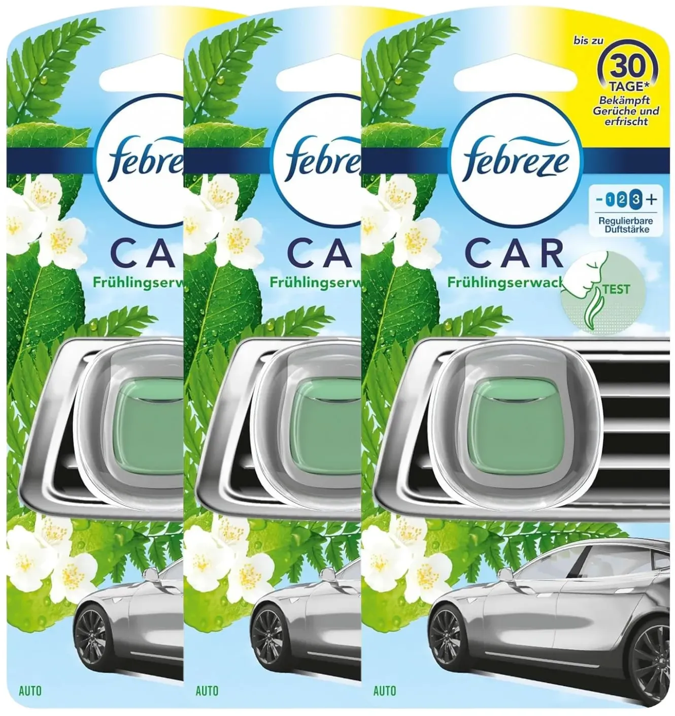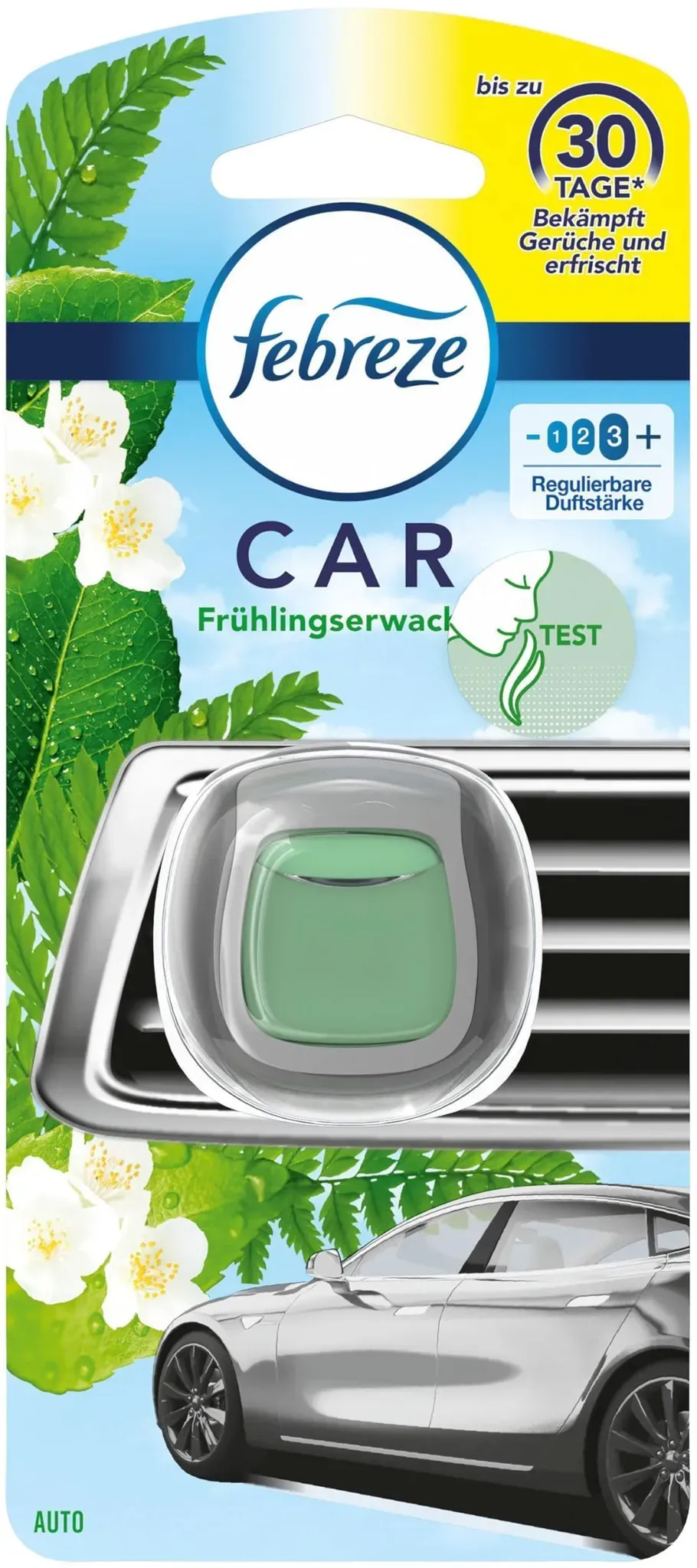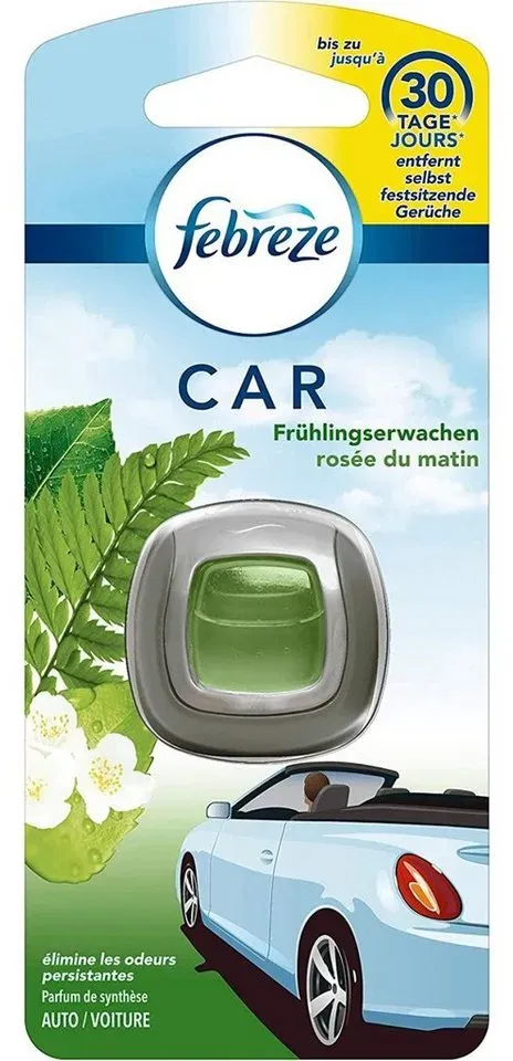 Lufterfrischer Raumdüfte Wohnen Haushalt - - febreze Autoduftspender CAR Frühlingserwachen - Frische für unterwegsDer febreze Autoduftspender CAR Frühlingserwachen bringt einen frischen Duft direkt in Ihr Auto. Ob täglicher Arbeitsweg oder lange Urlaubsfahrt - mit diesem kompakten Autoduftspender erleben Sie jederzeit einen angenehmen, unaufdringlichen Duft im Innenraum Ihres Fahrzeugs.Geruchsentfernung leicht gemachtAnders als herkömmliche Lufterfrischer überdeckt febreze CAR schlechte Gerüche nicht einfach - es entfernt sie dauerhaft. Der febreze Autoduftspender CAR Frühlingserwachen ist wirksam, aber unaufdringlich. Perfekt für kleine Innenräume, wie im Auto. Schnell und einfach befestigtDer Autoduftspender wird ganz einfach an der Lüftung befestigt und entfaltet beim Einschalten der Lüftung seine Wirkung. Praktisch, effizient und stilvoll - so macht frische Luft im Auto Freude.Gönnen Sie sich den kleinen Frischekick für unterwegs und bestellen Sie den febreze Autoduftspender CAR Frühlingserwachen direkt hier in unserem Online-Shop.Bitte beachten Sie die Gefahren- und Sicherheitshinweise:Gefahrenhinweise:-H315: Verursacht Hautreizungen-H317: Kann allergische Hautreaktionen verursachen-H319: Verursacht schwere Augenreizung-H411: Giftig für Wasserorganismen, mit langfristiger WirkungSicherheitshinweise:-P102: Darf nicht in die Hände von Kindern gelangen-P302 + P352: BEI BERüHRUNG MIT DER HAUT: Mit viel Wasser waschen-P312: Bei Unwohlsein GIFTINFORMATIONSZENTRUM oder Arzt ... Mit 3,95 Euro bietet dieser Neuwagenduft eine kostengünstige Möglichkeit, das Auto frisch zu halten. ![]() ![]() Febreze Auto Lufterfrischer Neuwagenduft