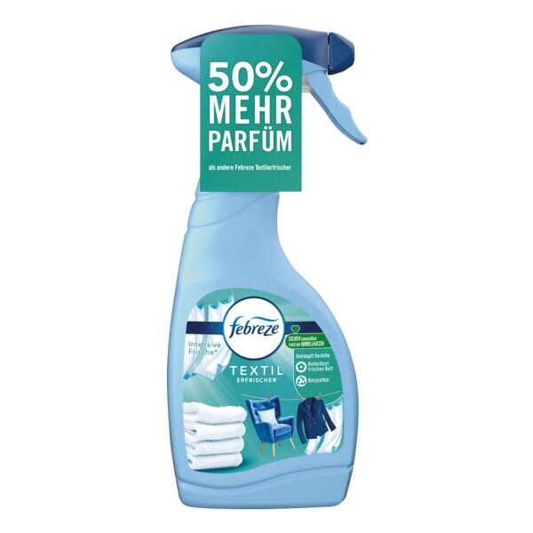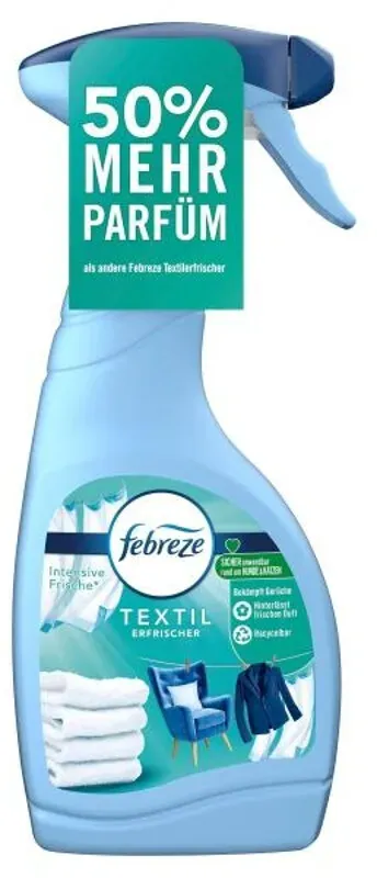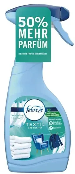 Kategorie: Waschmittel - Febreze - GTIN:8700216331326 - Febreze Gewebeverfrischer Cotton Breeze 500 ml verwendet die FreshAir-Technologie, um Gerüche zu beseitigen und für einen frischen, sauberen Duft auf Textilien wie Sofas, Vorhänge und Teppiche zu sorgen. Für Haustiere sicher und dermatologisch getestet, ist er ideal für schwer zu waschende Gegenstände vermeiden Sie Leder, Wildleder und Seide. - 3,95 Euro bei Joybuy - gefunden von billiger.de Der Febreze Textilerfrischer »Intensive Frische« für 4,27 Euro ist eine solide Option für alltägliche Geruchsentfernung. ![]() febreze Textilerfrischer »Intensive Frische«