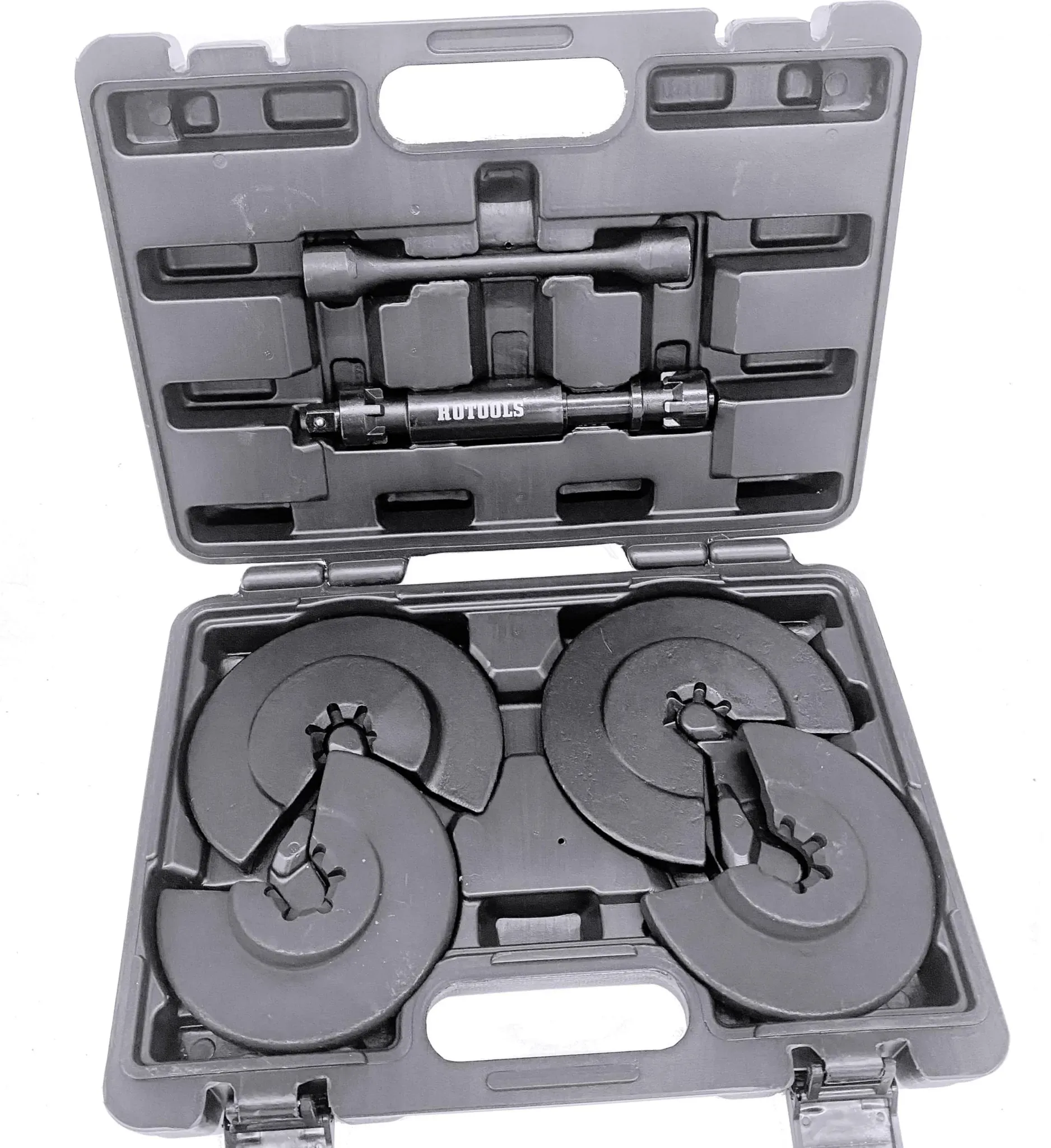 Kategorie: Schraubenschlüssel - GTIN:4260416057210 - Dieser Multifunktionale Werkzeugkasten ermöglicht es, Spiralfedern auf den Querlenker ohne Zerlegung der Achse zu entfernen oder zu ersetzen, spart dadurch wertvolle Zeit und Geld. Das Set wird mit zwei Größen Druckplatten geliefert. Es umfasst eine große Mehrheit der modernen Fahrzeuge, einschließlich: Große Druckplatte: Mercedes-Benz W123, W124, W202, W210 Vorderachse und W124, W129, W201, W202 Hinterachse plus Plus einige Modells von Saab, Ford und Skoda; Kleine Druckplatte: Mercedes-Benz W126, W140, W100, W200 Vorderachse und W107, W114, W115, W116, W123, W126, W140, W203 Hinterachse.Plus einige Modells von GM, Opel, Peugeot (406, 605), Rover, Hyundai, Saab, Volvo, Volkswagen, Fiat, Mazda, Toyota, Nissan, Mitsubishi, Ford Lada. Der Federspannerkasten ist nach hohen Qualitätsstandard gefertigt. Es eignet sich sowohl für zuhause Hobbyisten als auch für professionelle Anwender. - 69,90 Euro bei kfzteileschnellversand24 - gefunden von billiger.de Dieser ROTOOLS Innenfederspanner ist eine solide Wahl für Mercedes, BMW und VAG Fahrzeuge und bietet eine gute Balance zwischen Preis und Funktionalität. ![]() ![]() ROTOOLS Innenfederspanner Federspanner für BMW Mercedes VAG