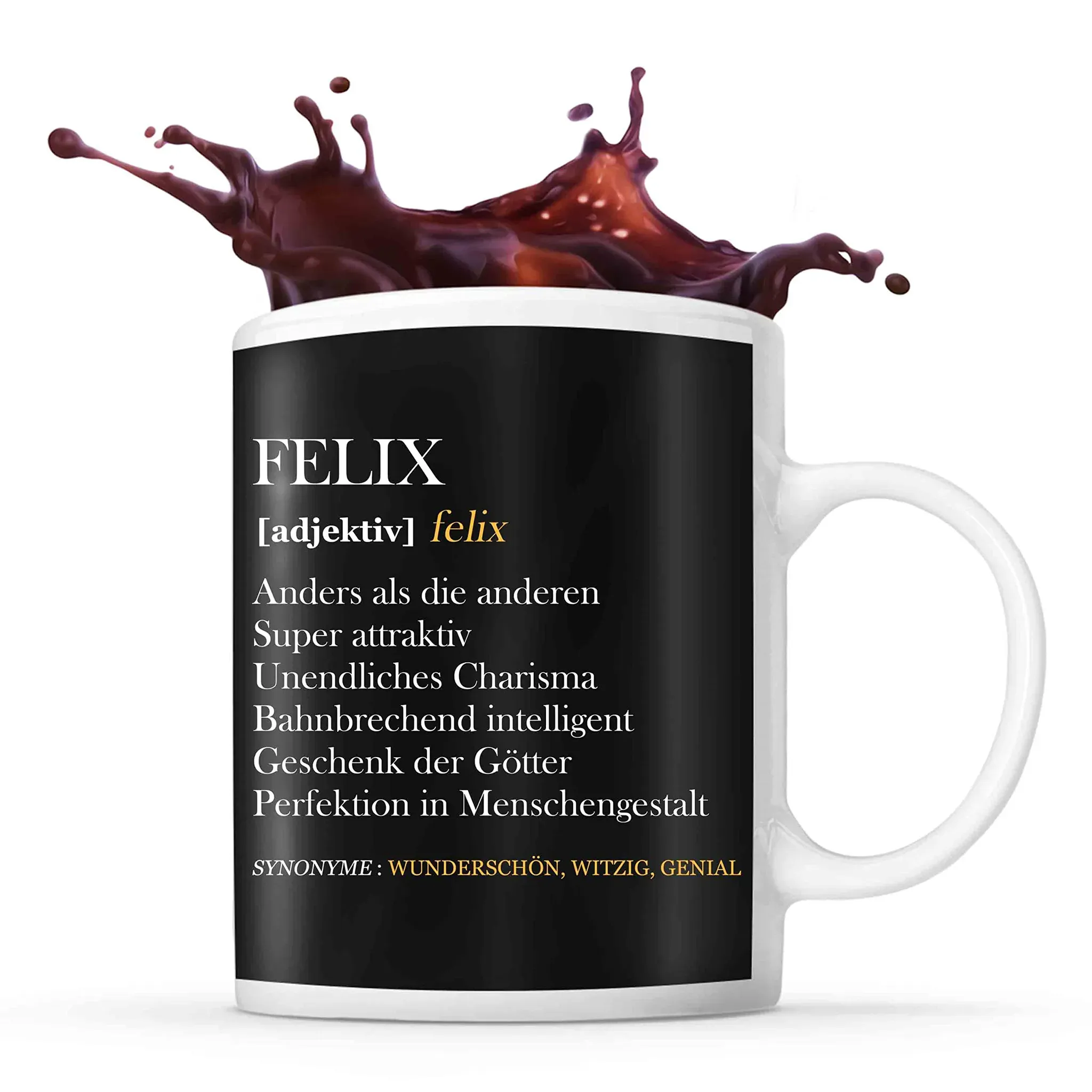 Dieses Angebot ist ein Beispiel für Angebote, die kürzlich auf dem eBay-Marktplatz in der Kategorie 261186 verfügbar waren. Bitte aktualisieren Sie die Suchergebnisse um aktuelle Angebote zu erhalten. Diese Tasse ist ein lustiges und persönliches Geschenk für jeden Felix. ![]() ![]() planetee Tasse Felix | Definition Vorname | Tasse mit Spruch lustig Fun Tasse Geschenkideen fürs Büro zum Geburtstag Jubiläum Kaffeetasse Bürotasse