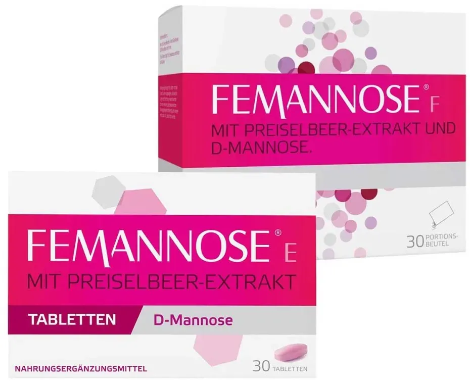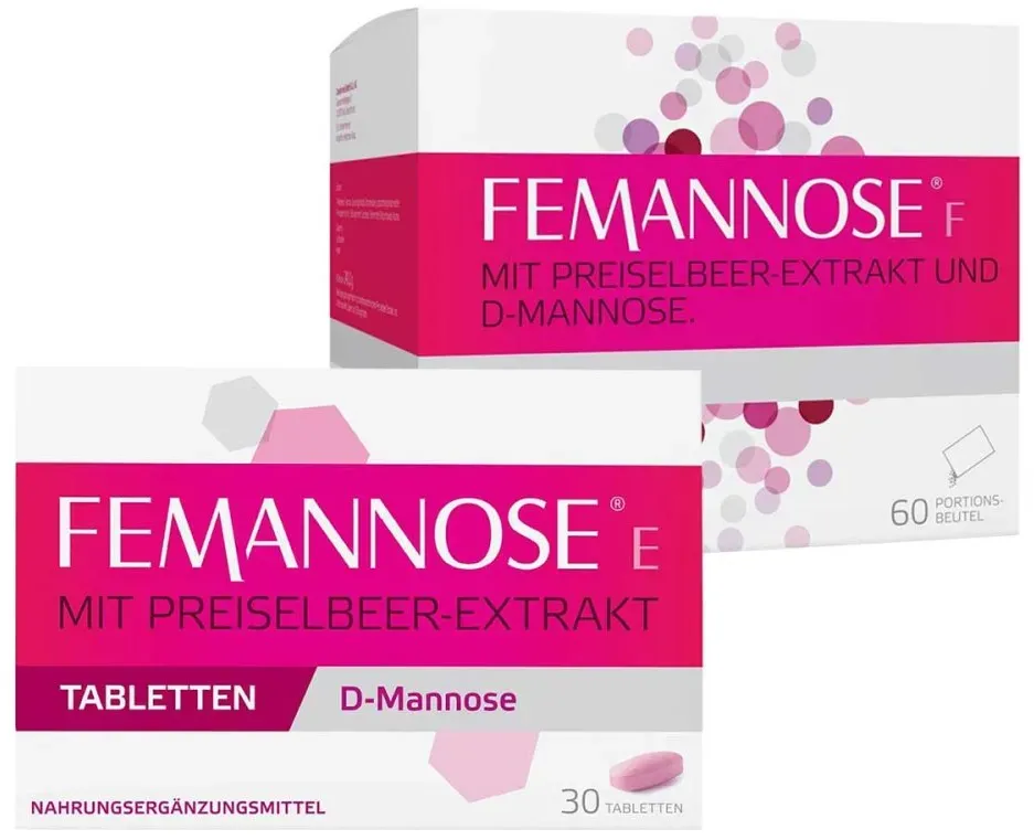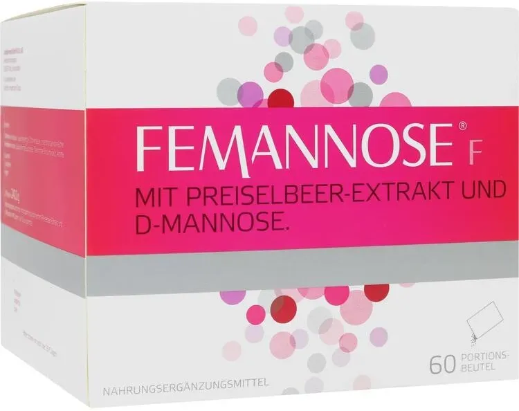 Verfügbarkeit: Lieferbar in 1-2 Werktagen - 0,83 €/St - Kategorie: Nahrungsergänzungsmittel - Klosterfrau - GTIN:4008617261643 - PZN:07152960 - Ratgeber zu NahrungsergänzungsmittelnNahrungsergänzungsmittel sollen eine gesunde Ernährung und Lebensweise unterstützen, sie jedoch nicht ersetzen. Besonders wertvoll sind Inhaltsstoffe wie der mittels eines speziellen Verfahrens hergestellte Preiselbeer-Extrakt. Dieser ist reich an Proanthocyanidinen, einem bedeutenden Inhaltsstoff für diese Präparate.D-Mannose: Ein natürlicher ZuckerD-Mannose ist ein von Natur aus vorkommender Zucker, der auch im menschlichen Körper in kleinen Mengen vorhanden ist und somit gut vertragen wird. Da er den Glukosestoffwechsel kaum beeinflusst, stellt er eine interessante Ergänzung zur Ernährung dar. Zudem überzeugt er durch seinen leicht süßen Geschmack.Anleitung zur AnwendungErwachsenen und Jugendlichen ab 1 n wird empfohlen, täglich 1 bis 3 Beutel zu konsumieren. Der Beutelinhalt sollte in ein Glas Wasser (200 ml) eingerührt werden, bevor er getrunken wird.Wichtige Hinweise Im Falle einer überempfindlichkeit oder Allergie gegenüber einer der Zutaten, sowie während der Schwangerschaft oder Stillzeit, ist es ratsam, mit einem Arzt oder einer ärztin Rücksprache zu halten. Bitte beachten: Dieses Produkt ist kein Ersatz für eine ausgewogene und abwechslungsreiche Ernährung oder einen gesunden Lebensstil. überschreiten Sie nicht die empfohlene tägliche ... Dieses umfangreiche Kombi-Angebot mit Femannose E Tabletten und 60 Femannose F Granulat-Sticks ist ideal für eine längere und umfassende Anwendung. ![]() ![]() Femannose E Tabletten (30 stk) & Femannose F Granulat (60 stk)