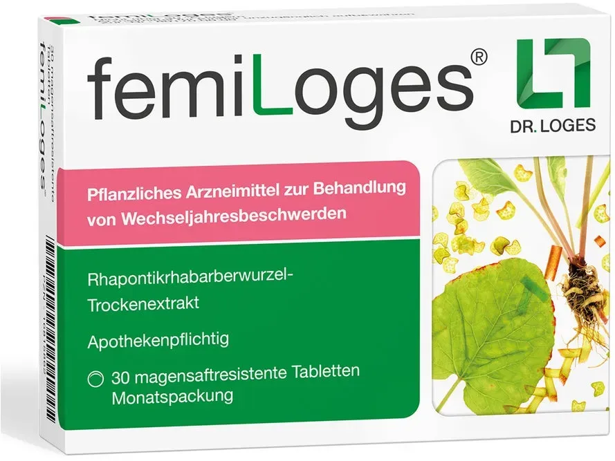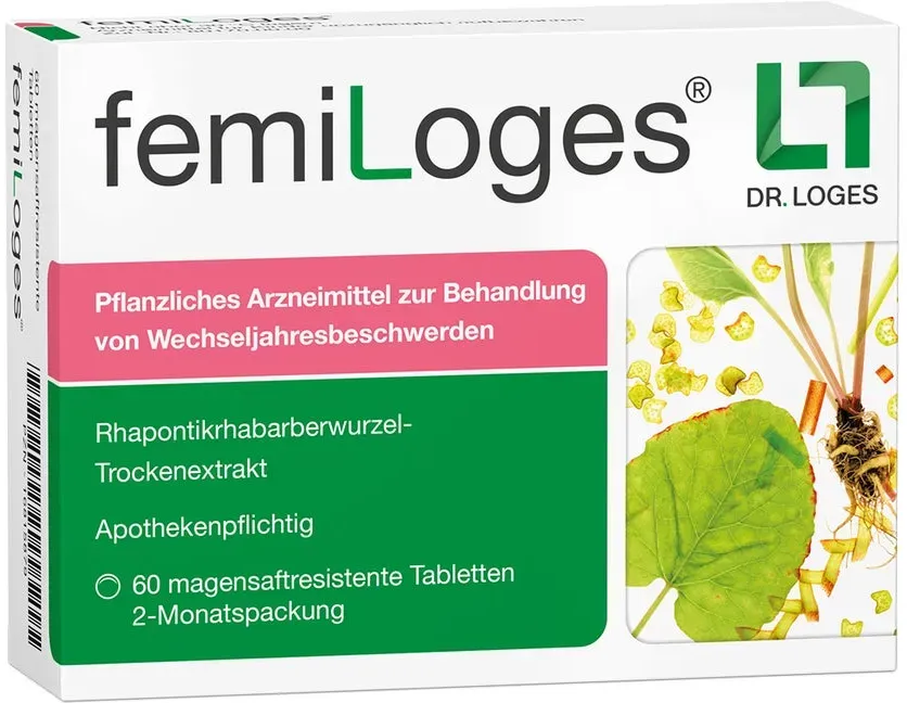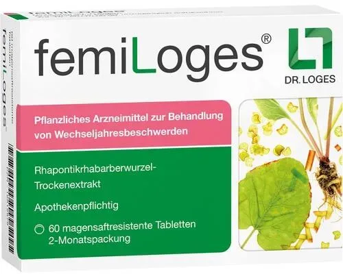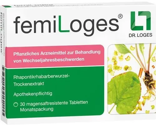 femiloges - Anwendungsgebiet von femiLoges femiLoges enthält einen speziellen Extrakt aus der Wurzel des Sibirischen Rhabarbers. Es kann typische Symptome der Wechseljahre lindern, die sowohl das körperliche als auch das seelische Wohlbefinden beeinträchtigen. Hierzu zählen: (3)HitzewallungenSchlafproblemeVermehrtes SchwitzenStimmungsschwankungenUnruhe und ängsteNiedergeschlagenheitWirkungsweise von femiLoges Der Sibirische Rhabarber (Rheum rhaponticum) ist eine Heilpflanze mit langer medizinischer Tradition. Die enthaltenden Stilbene gehören zur Gruppe der Phytoöstrogene.(8) Diese pflanzlichen Wirkstoffe ähneln in ihrer Struktur dem körpereigenen Hormon östrogen. Dank dieser Eigenschaft lindert femiLoges typische Wechseljahresbeschwerden wie Hitzewallungen und Schlafstörungen spürbar.(2) Eine klinische Studie mit 109 Frauen in den Wechseljahren zeigte eine deutliche Besserung aller erfassten Symptome im Vergleich zur Placebo-Gruppe.(3)Wirkstoffe / Inhaltsstoffe / ZutatenInhaltsstoffe von femiLoges Eine magensaftresistente Tablette enthält 4 mg Trockenextrakt aus Rhapontikrhabarberwurzel (16-26:1) Auszugsmittel: wässrige Calciumoxid-Lösung (Calciumoxid: Gereinigtes Wasser im Verhältnis 1:38 (m/m)). Die sonstige Bestandteile sind: Calciumcarbonat(E170), Carnaubawachs, gebleichtes Wachs, Lactose-Monohydrat, Macrogol 6000, Macrogol 35000, Magnesiumstearat (Ph.Eur.)[pflanzlich], Methacrylsäure-Methylmethacrylat Copolymer (1:1) (Ph.Eur.), mikrokristalline Cellulose, ... Dieses Angebot ist das günstigste für die 30-Stück-Packung und somit ideal zum Ausprobieren oder für den kurzfristigen Bedarf. ![]() ![]() Dr. Loges FEMILOGES magensaftresistente Tabletten 30 St