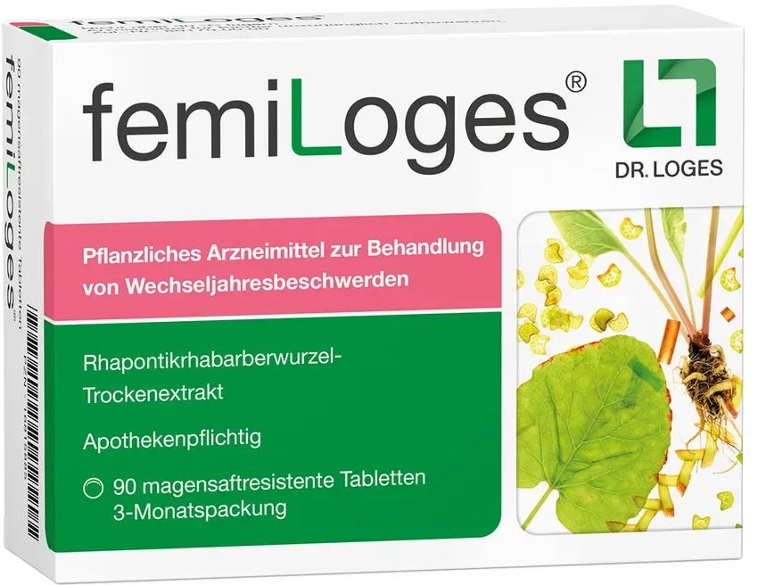 24 Händlerangebote bei billiger.de - Kategorie: Arzneimittel - Dr. Loges - Anwendungsgebiet von femiLoges femiLoges enthält einen speziellen Extrakt aus der Wurzel des Sibirischen Rhabarbers. Es kann typische Symptome der Wechseljahre lindern, die sowohl das körperliche als auch das seelische Wohlbefinden beeinträchtigen. Hierzu zählen: (3)HitzewallungenSchlafproblemeVermehrtes SchwitzenStimmungsschwankungenUnruhe und ängsteNiedergeschlagenheitWirkungsweise von femiLoges Der Sibirische Rhabarber (Rheum rhaponticum) ist eine Heilpflanze mit langer medizinischer Tradition. Die enthaltenden Stilbene gehören zur Gruppe der Phytoöstrogene.(8) Diese pflanzlichen Wirkstoffe ähneln in ihrer Struktur dem körpereigenen Hormon östrogen. Dank dieser Eigenschaft lindert femiLoges typische Wechseljahresbeschwerden wie Hitzewallungen und Schlafstörungen spürbar.(2) Eine klinische Studie mit 109 Frauen in den Wechseljahren zeigte eine deutliche Besserung aller erfassten Symptome im Vergleich zur Placebo-Gruppe.(3)Wirkstoffe / Inhaltsstoffe / ZutatenInhaltsstoffe von femiLoges Eine magensaftresistente Tablette enthält 4 mg Trockenextrakt aus Rhapontikrhabarberwurzel (16-26:1); Auszugsmittel: wässrige Calciumoxid-Lösung (Calciumoxid: Gereinigtes Wasser im Verhältnis 1:38 (m/m)). Die sonstige Bestandteile sind: Calciumcarbonat(E170), Carnaubawachs, gebleichtes Wachs, Lactose-Monohydrat, Macrogol 6000, Macrogol 35000, Magnesiumstearat (Ph.Eur.)[pflanzlich], Methacrylsäure-Methylmethacrylat ... Eine weitere empfehlenswerte Option für die 90-Stück-Packung von DocMorris. ![]() ![]() femiLoges 90 St