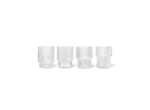 ferm LIVING - EAN: 5704723323112 - Karaffe und Glas im Set: Karaffen-Set Ripple Small aus mundgeblasenem Glas Bleiben Sie gesund mit genügend Wasser und diesem handlichen Set Ripple aus einer kleinen Karaffe und einem Glas, das auch als Deckel verwendet werden kann. Das Set hat die Charakteristika der Serie aus dem Hause ferm LIVING mit dem geriffelten mundgeblasenen Glas. Es könnte das neue gesunde Bürozubehör sein oder ein neuer Favorit für den Nachttisch. Produkthinweise: 2-teiliges Set. Volumen Karaffe: 0,5 Liter. Volumen Glas: 200 ml. Aus mundgeblasenem Glas - Abweichungen zum Produktfoto sind möglich. Pflegehinweis: Spülmaschinenfest. - bei lampenwelt.de - aus Yadore Produktdaten ![]() ferm LIVING Glas Ripple, klar, 200 ml, mundgeblasen, 4er-Set