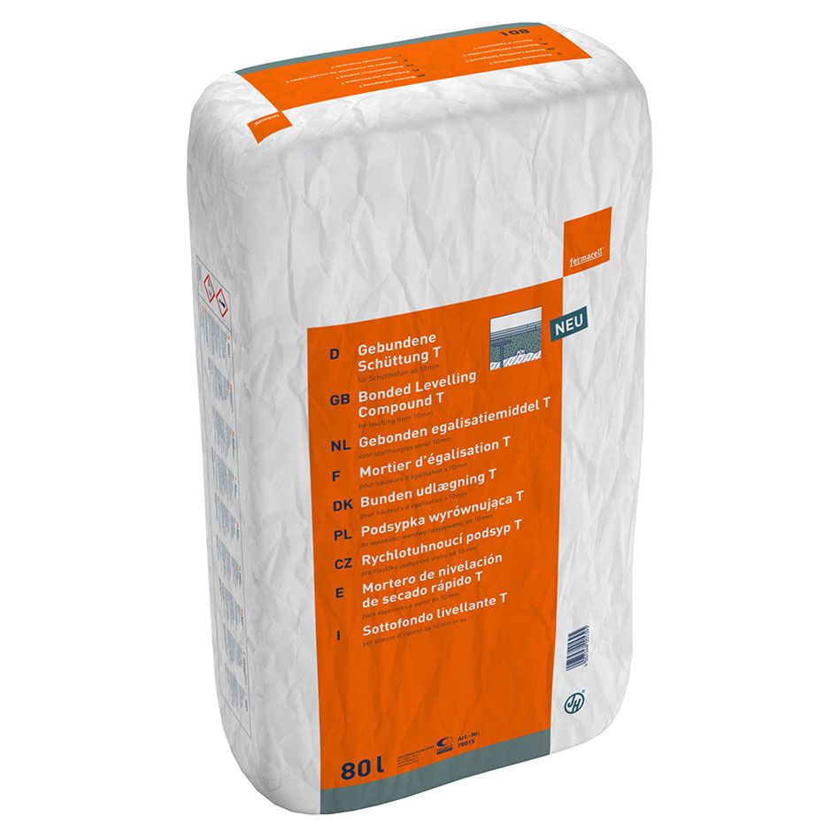 fermacell - EAN: 4007548024617 - Die Gebundene Schüttung T von fermacell ist eine Ausgleichsschüttung für hohe Ebenenunterschiede. Sie kann bis zu 2000 mm problemlos nivelieren. Sie ist wassserundurchlässig, hat eine hohe Festigkeit aber ein nur sehr geringes Gewicht. Sie kann somit auch bei Holzbalkendecken verwendet werden. Die Schüttung härtet schnell aus und ist nach kurzer Zeit schon belegereif. Sie ist ideal als Untergrund unter Trockenestrich- Elementen geeignet.Technische Daten:Inhalt: 80 Liter (24,7 kg) Schütthöhe: ab 10 - 2000 mm ( in 300 mm Schritten) Verbrauch: 10 l (4kg) pro 1 cm Höhe/m Begehbar nach ca. 12 Stunden Belegereif nach ca. 24 Stunden Wärmeleitzahl: 0,10 W/mK Druckfestigkeit: 0,5 N/mm Nicht brennbar, A2-s1, d0 - bei benz24.de - aus Yadore Produktdaten ![]() ![]() fermacell FC - Gebundene Schüttung eBay T-80L Dämmung Ausgleichsschüttung Schüttdämmung